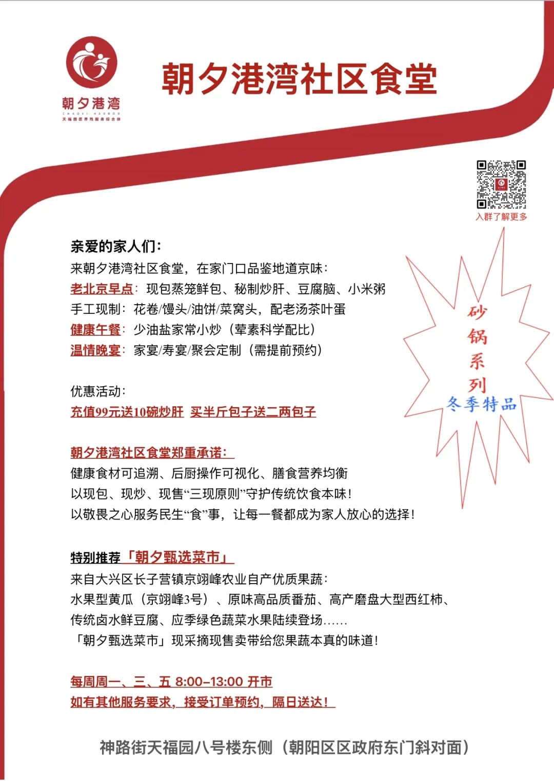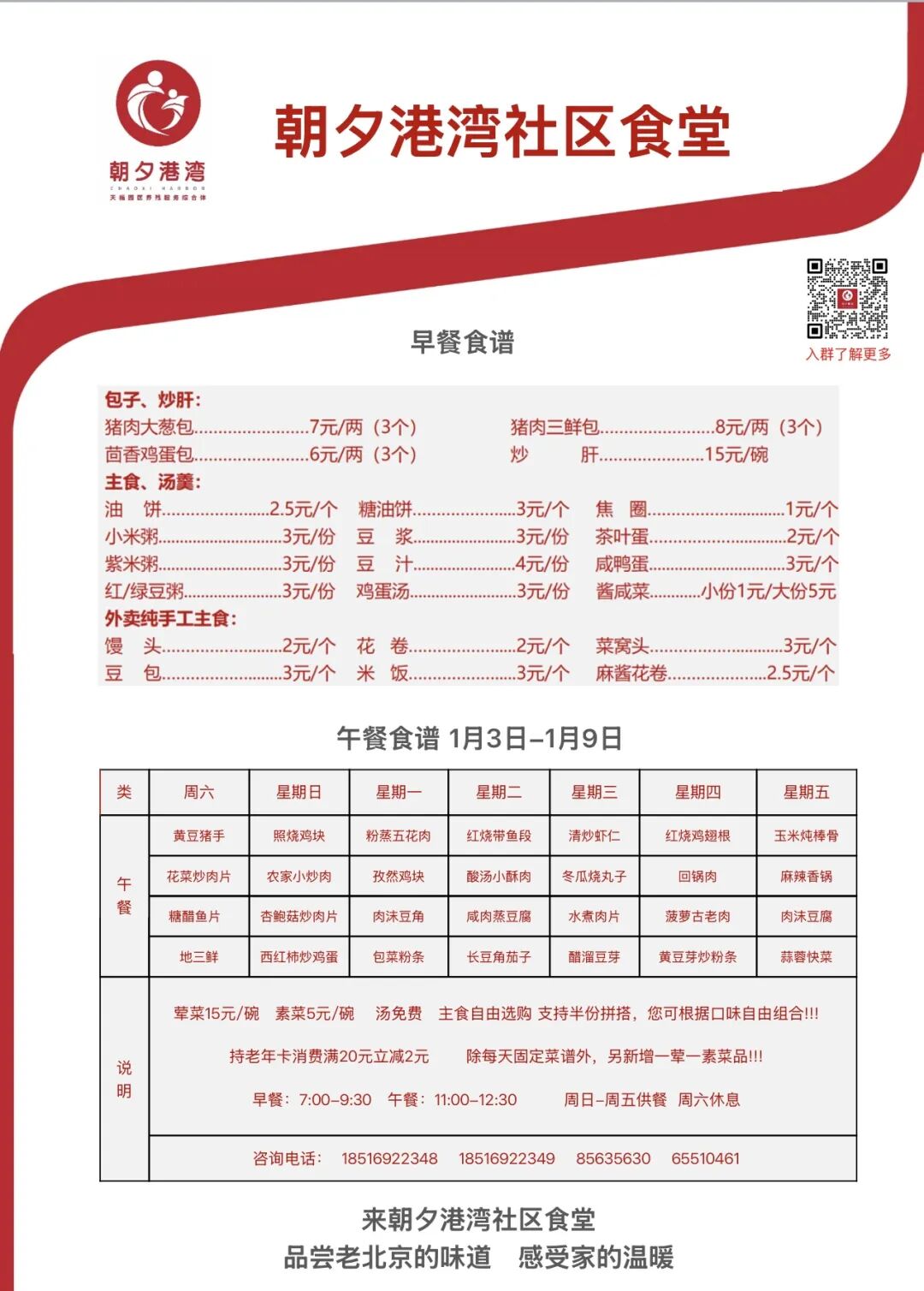 朝夕港湾社区食堂本周菜单已更新——