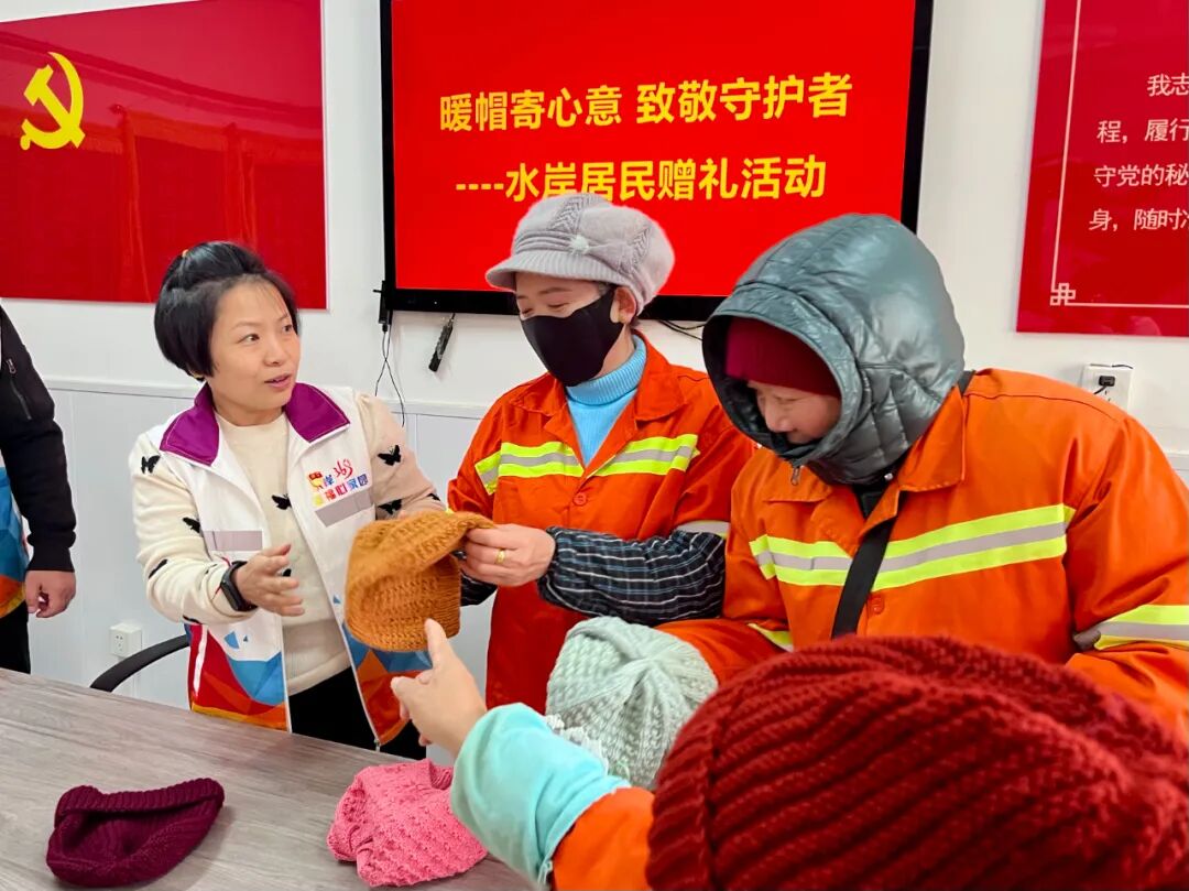 一顶暖帽,一份心意;一次善举,一片温情。这场简单的赠礼,不仅是居民对户外劳动者的致敬,更为社区的温暖故事增添了动人一笔。事实上,水岸家园社区一直将户外劳动者的冷暖放在心上:冬至时节邀请保安、保洁一起吃饺子,将闲置羽绒服赠给保安御寒,募集居民捐赠全新闲置洗护用品送给骑手小哥,为垃圾分类志愿者定制棉服和护膝……正是这些点滴行动,汇聚成社区最动人的温暖底色,持续擦亮社区“三居益融”公益促融合治理品牌。水岸家园社区书记李劲欣表示:“居民主动献出爱心、关爱劳动者,正是社区凝聚力不断增强的最好体现。未来,我们会继续搭建更多爱心互动平台,让邻里互助、关爱他人成为社区常态,让温暖在社区一直传递下去。"
