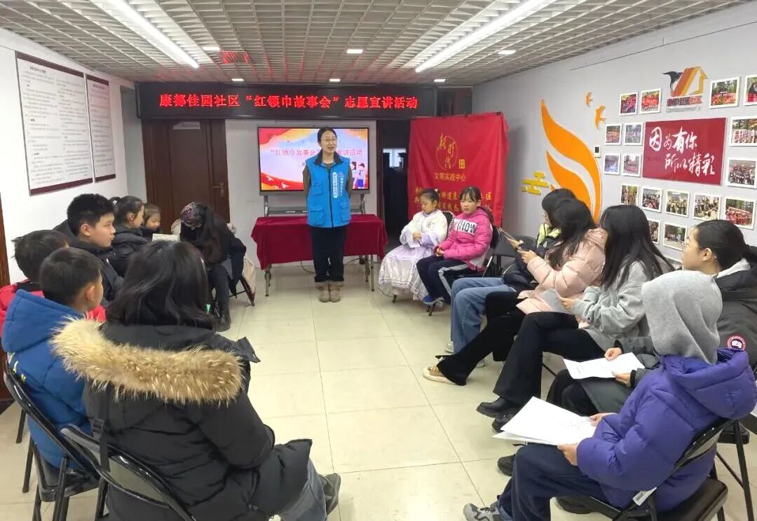 康都佳园社区举办了“红领巾故事会”志愿宣讲活动。辖区青少年化身“小小红色宣讲员”,通过讲述革命故事,让爱国情怀在童声讲述中生根发芽,为社区传递出一份真挚的“爱国福”。