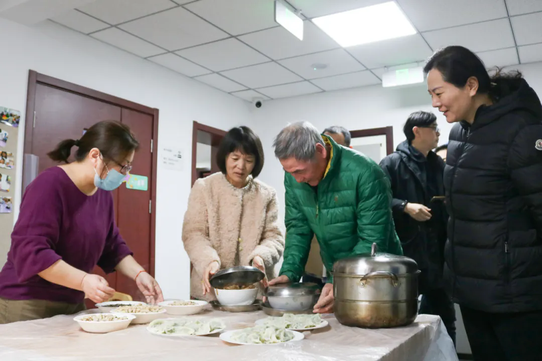 一大早,家园·物业邻里中心“贞美”全时驿站便忙得热火朝天,红娘小组的“贞美妈妈”们与社区工作人员一同围在桌前,调馅、包捏,手指翻飞间,一个个圆鼓鼓的饺子整齐排列。