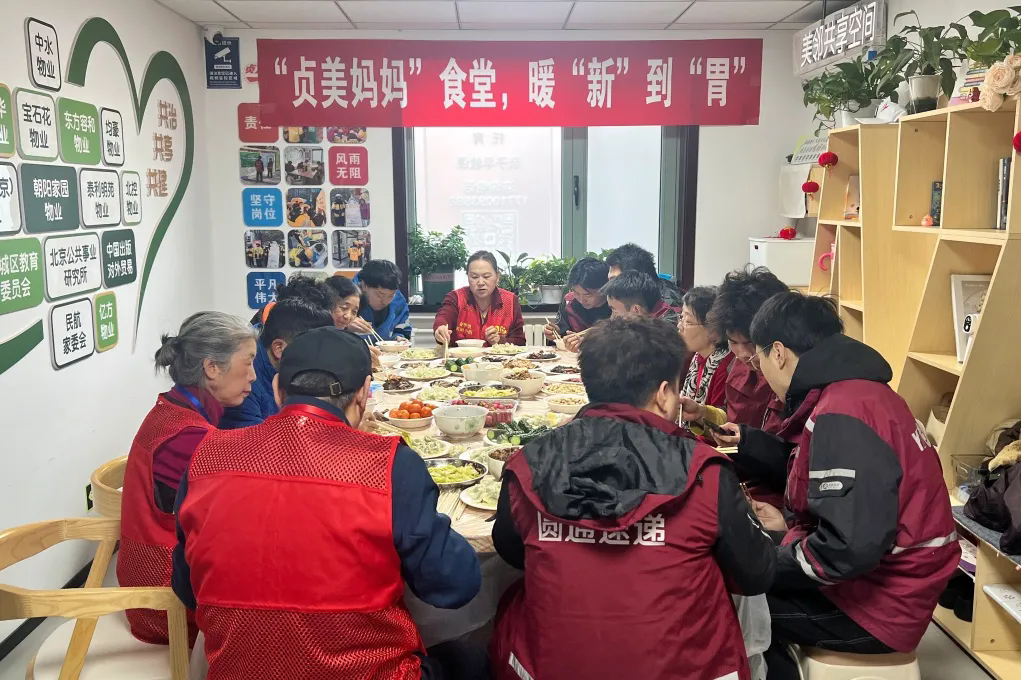 “贞美妈妈”食堂由社区党员志愿队伍红娘小组发起,相邻社区在职党员、社会单位积极加入,着力解决新就业群体吃家常菜难、交友难等实际问题,每年劳动节、端午节、中秋节等重要时间节点都会举办暖新活动,用家常味道传递暖心关怀。