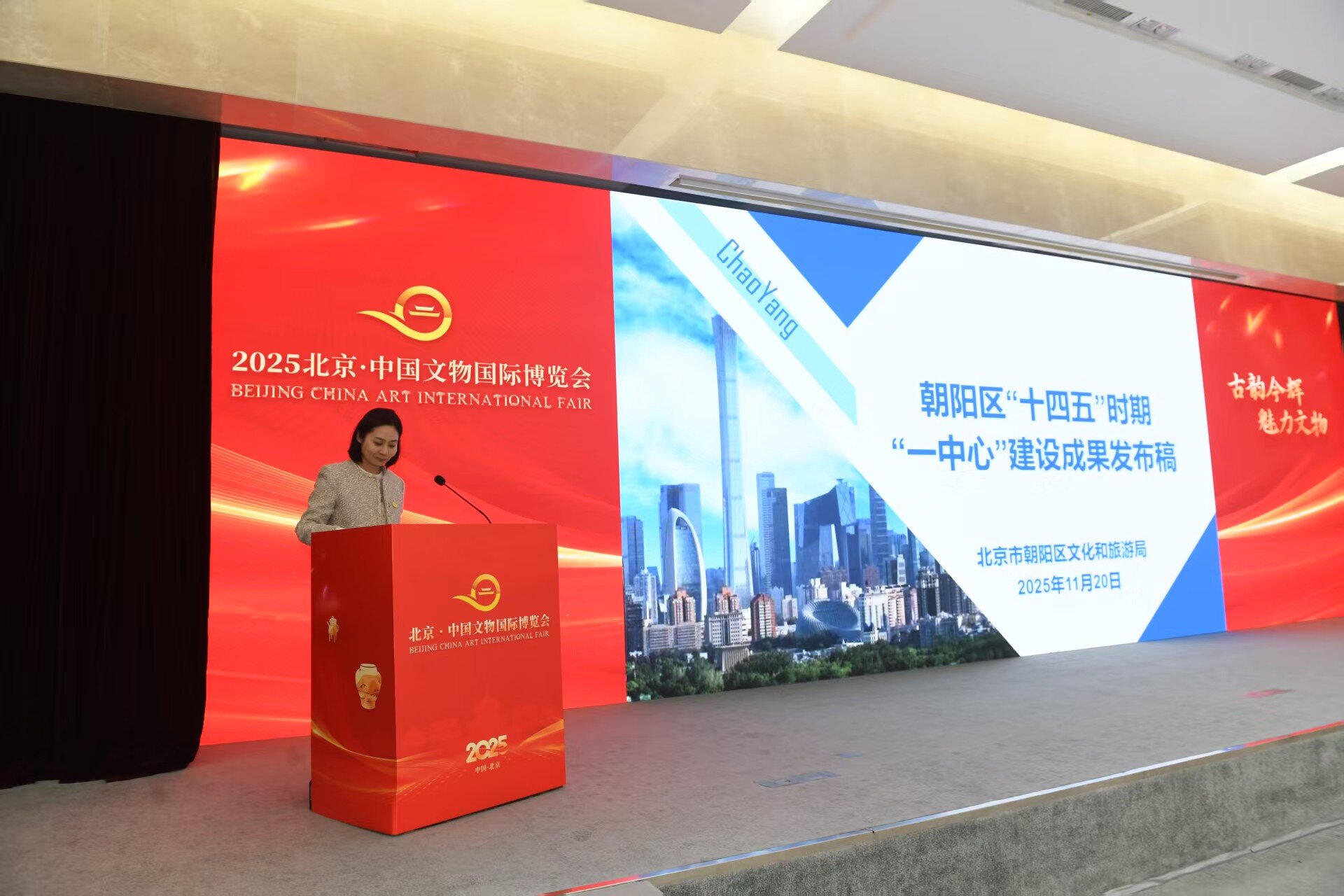 11月21日上午,2025北京中国文物国际博览会开幕式上,朝阳区文化和旅游局作为区级代表,发布了“十四五”时期朝阳区国际文物艺术品交易中心建设成果。