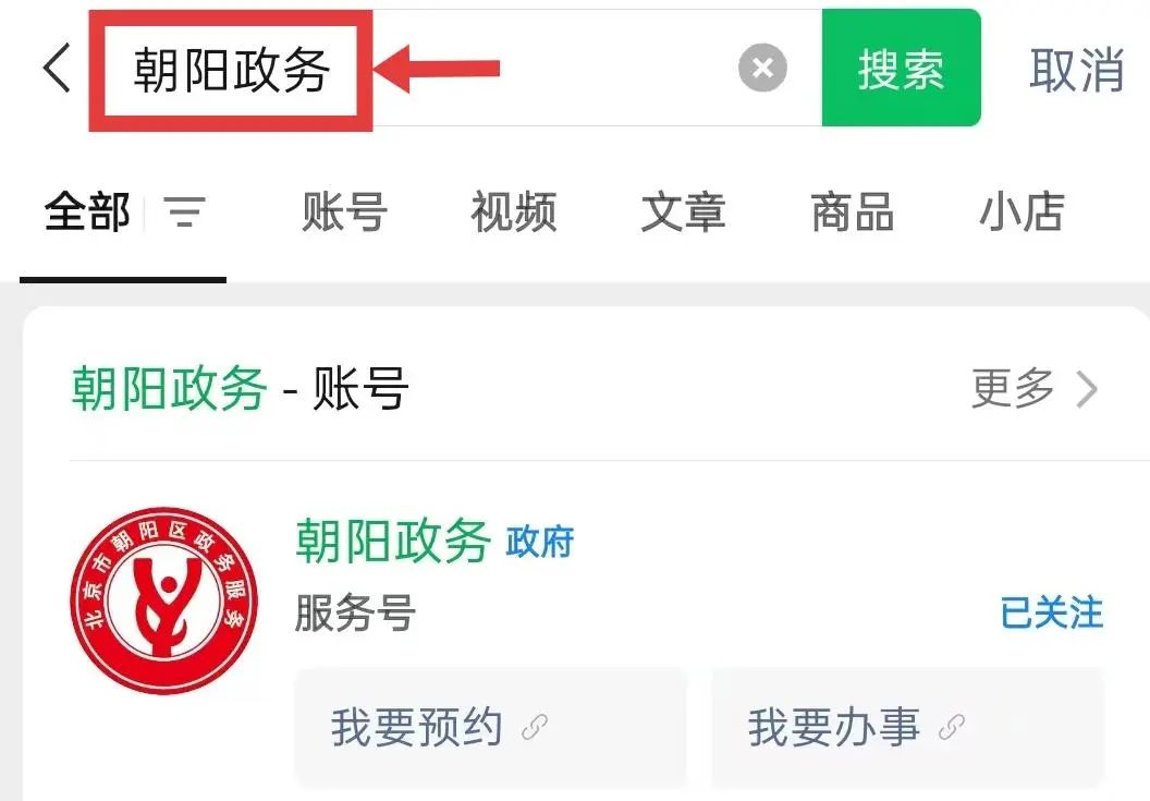 一、搜索进入“朝阳政务”公众号;