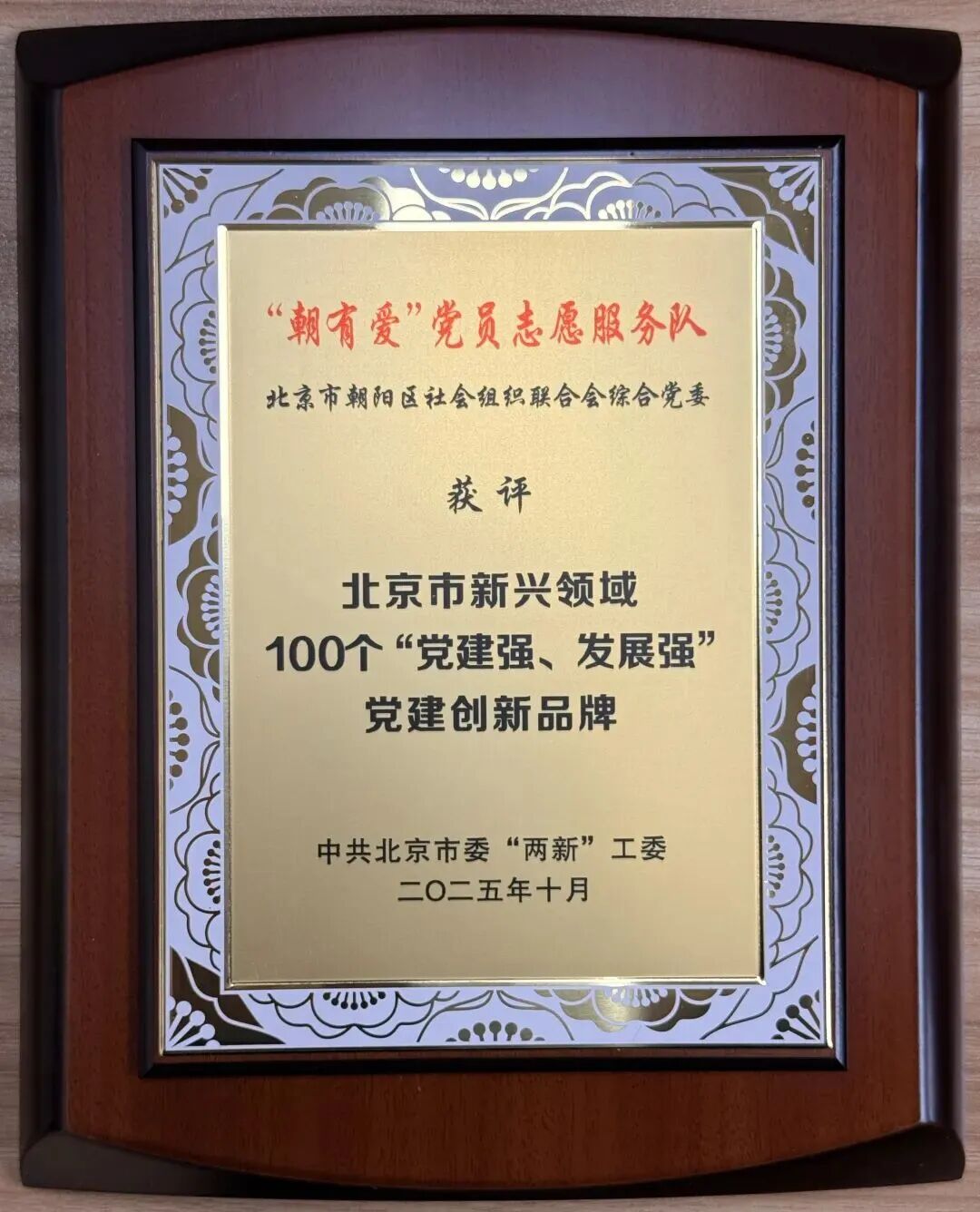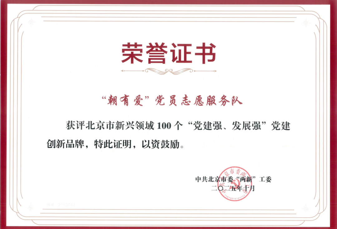 “‘朝有爱’党员志愿服务队”党建品牌入选2025年北京新兴领域100个“党建强、发展强”党建创新品牌