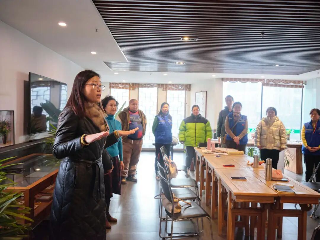 随后,团队走进梦工坊康复中心,参观多层级的康复活动安排。一楼手工小组正制作布艺灯笼,通过细致的手工锻炼康复者精细动作能力;二楼快板小组围绕“防复发”主题开展语言与记忆训练,增强表达与社交信心;三楼心灵驿站由专业精神卫生人员引导,协助康复者梳理情绪、认识自我,提升心理调适能力。这些活动集中展现了朝阳区在康复服务中“融医疗、强支持、重赋能”的系统化设计理念。