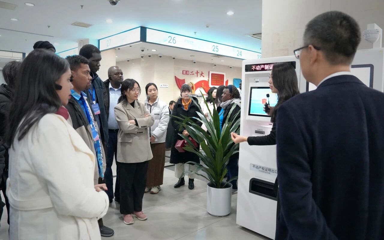 在中英文两位讲解员的专业引导和介绍下,考察团依次深入区政务服务中心的四大功能区,全方位、多角度地感受朝阳区政务服务的智能化、国际化水平,深入了解我国在政务服务领域的创新举措与实践经验。参观过程中,考察团成员积极参与、踊跃交流。