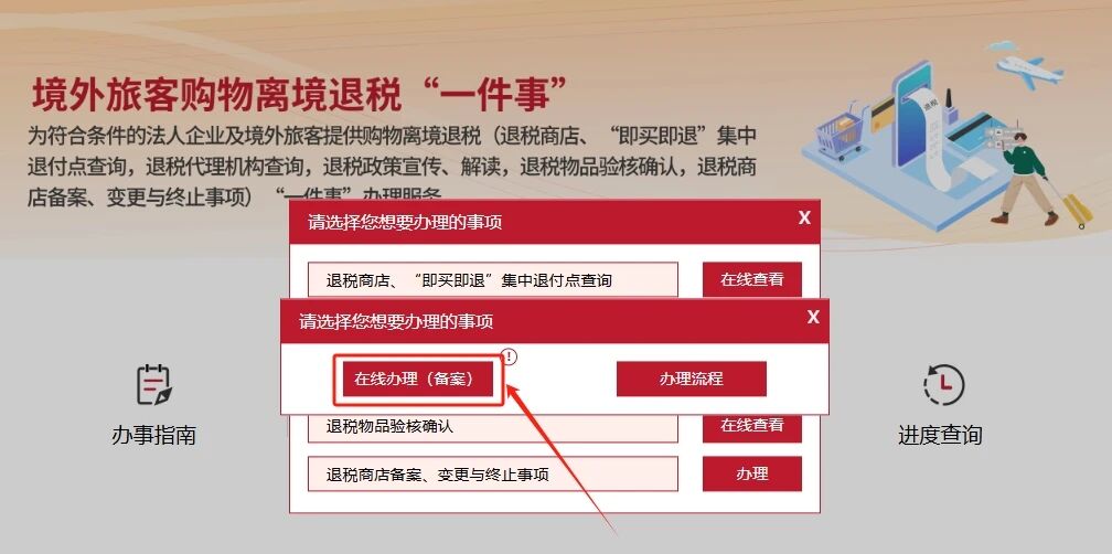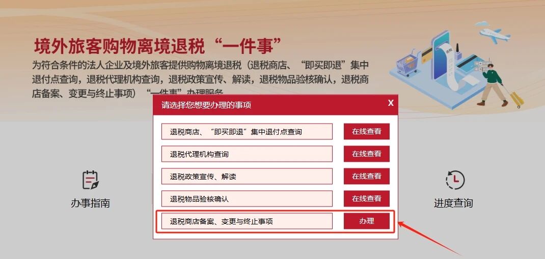 5.也可办理:退税商店备案、变更与终止业务,点击“办理”→“在线办理(备案)”,