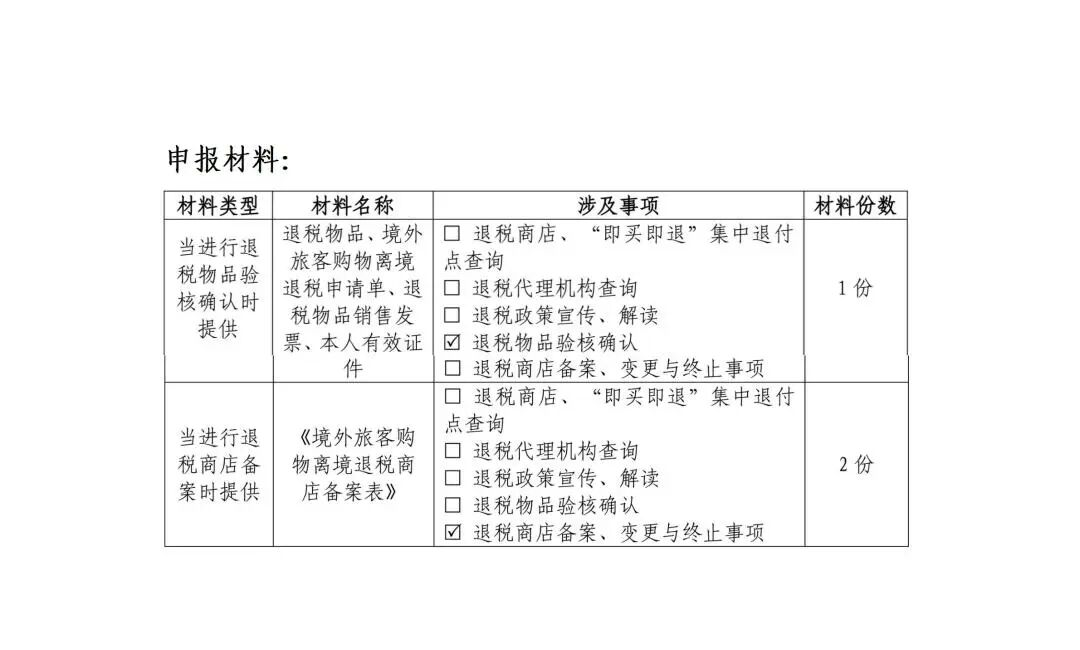 《境外旅客购物离境退税商店备案表》,如一家企业主体需要同时备案多家销售网点的则请补充提交《离境退税商店备案表(多网点信息采集专用)》。