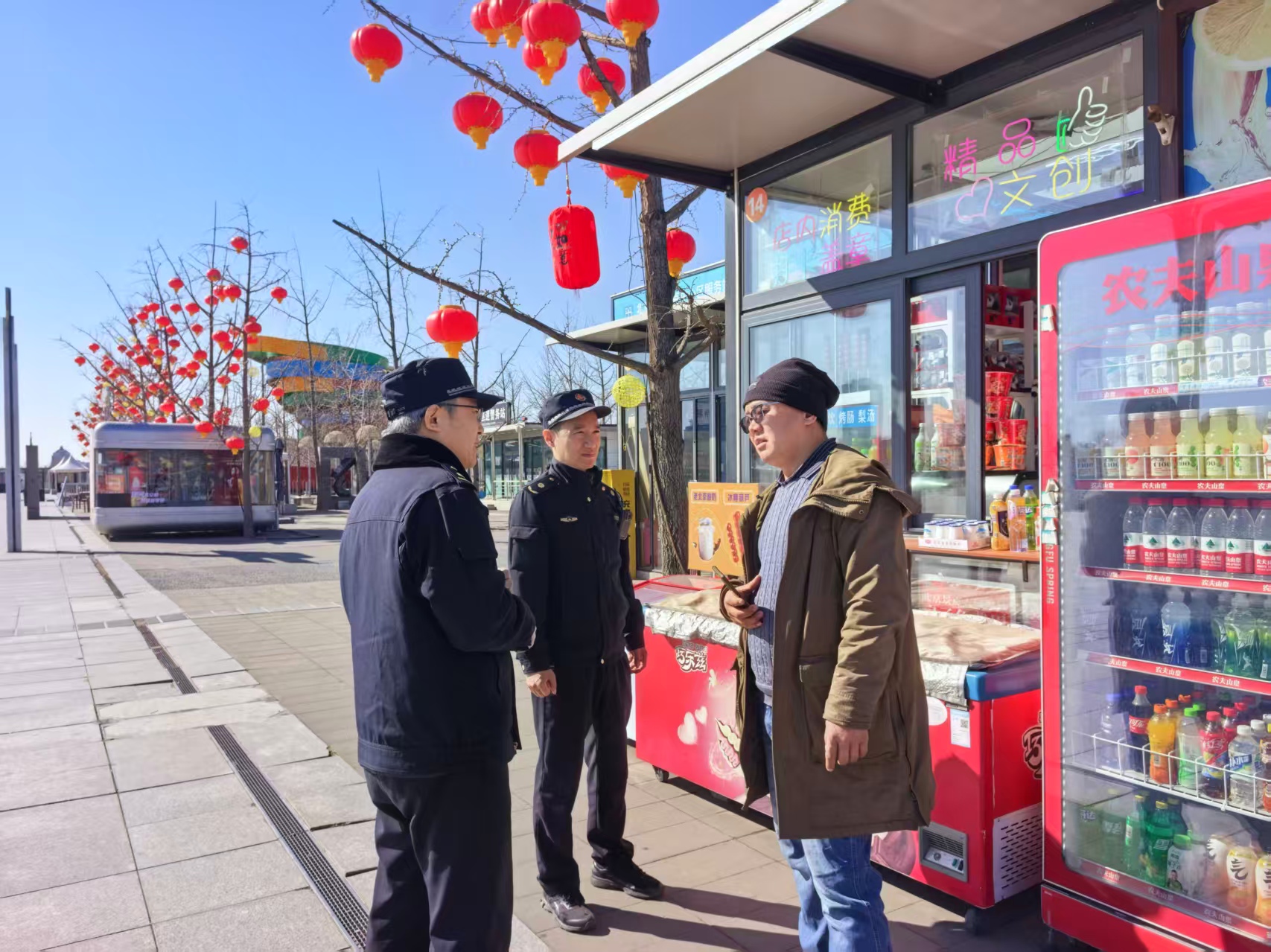 3月12日,奥林匹克中心区执法队督促园区商户落实“门前三包”责任。(通讯员 奥林匹克中心区 沈庆锋)