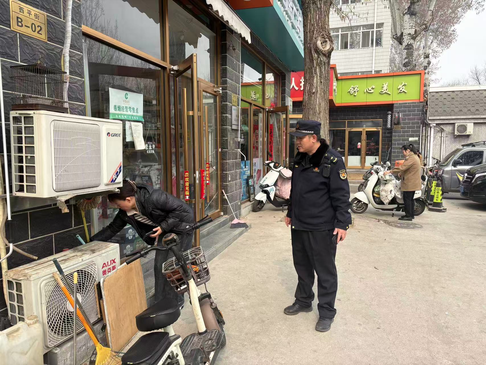 3月18日,机场执法队对辖区商户“门前三包”责任制落实情况进行检查。(通讯员 机场 边靖)