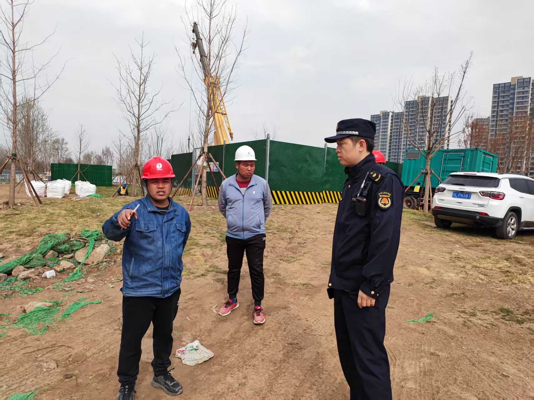 4月1日,东坝执法队对辖区施工工地扬尘防治措施落实情况进行检查。(通讯员 东坝 王化玲)