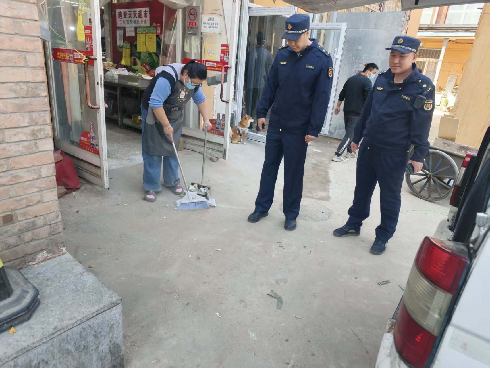 4月1日,机场执法队对辖区商户“门前三包”责任制落实情况进行检查。(通讯员 机场 边靖)
