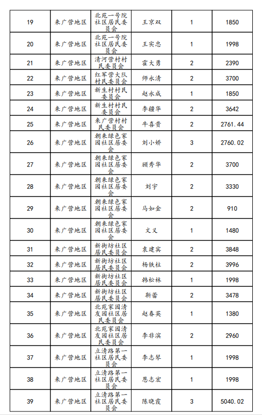 来广营地区2025年11月享受城乡低保公布