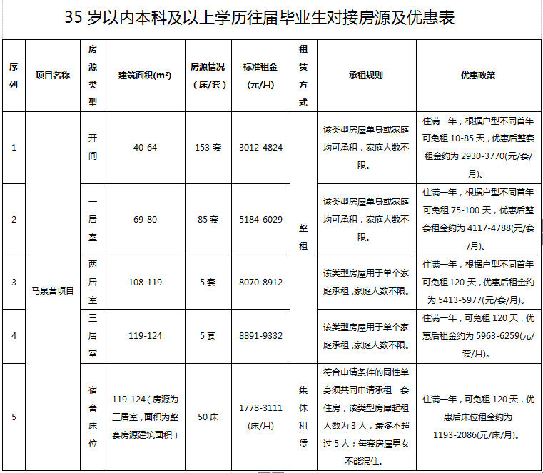 本次大学生对接租赁住房的房源,根据登记时个人状态,享受相应优惠政策,活动期内每人仅限享受一种优惠。已通过大学生批次入住人员,不得参与本次选房。
