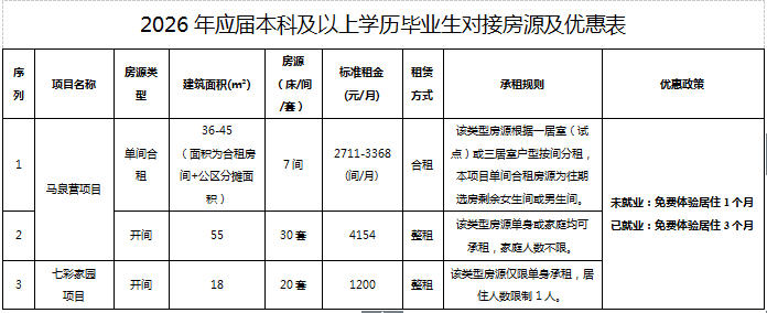 为缓解毕业生走出校门后初入社会的住房压力,解决阶段性住房问题,朝阳区开展2026年第一批面向毕业大学生对接租赁住房工作。现就具体事宜公告如下: