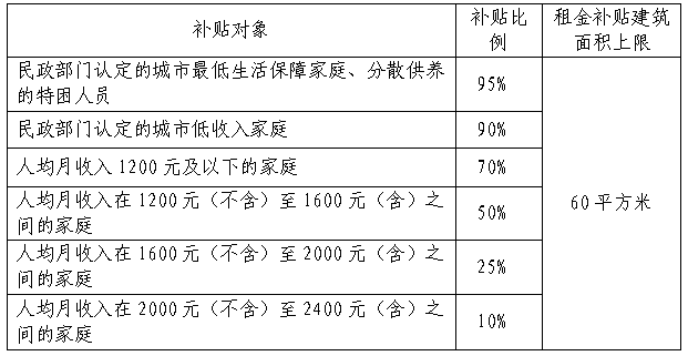 民政部门认定的城市最低生活保障家庭、分散供养的特困人员95%60平方米