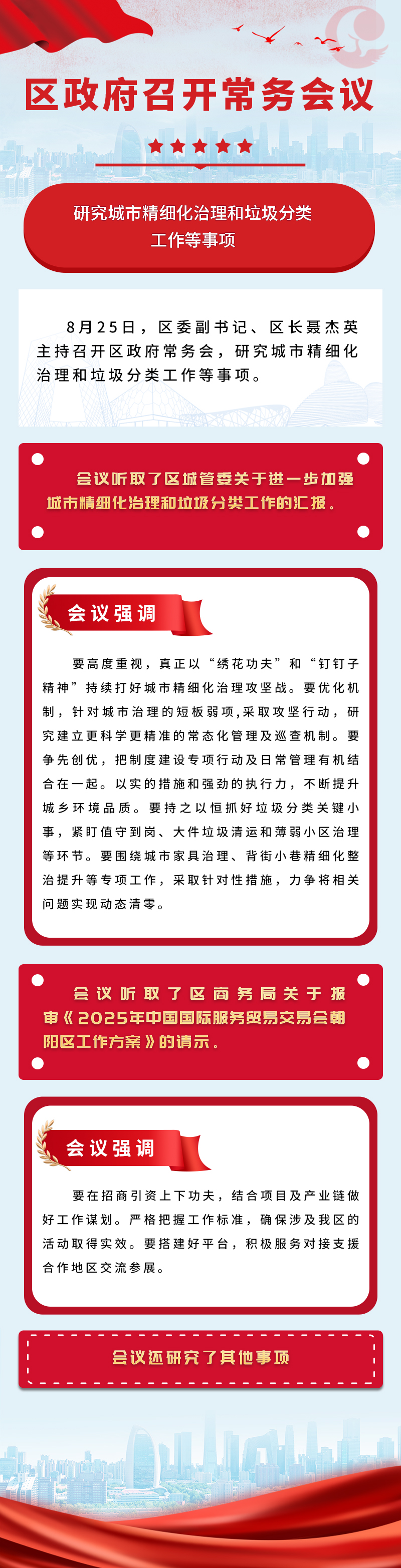 区政府召开常务会议,研究城市精细化治理和垃圾分类工作等事项