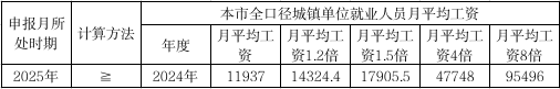 注:未公布新一年度本市全口径城镇单位就业人员月平均工资前,参照上一年度执行。