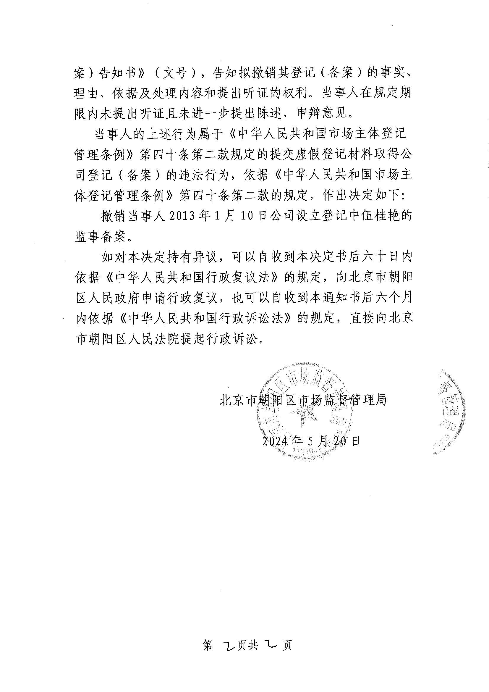 撤销北京汇京天成科技有限公司登记(备案)决定书