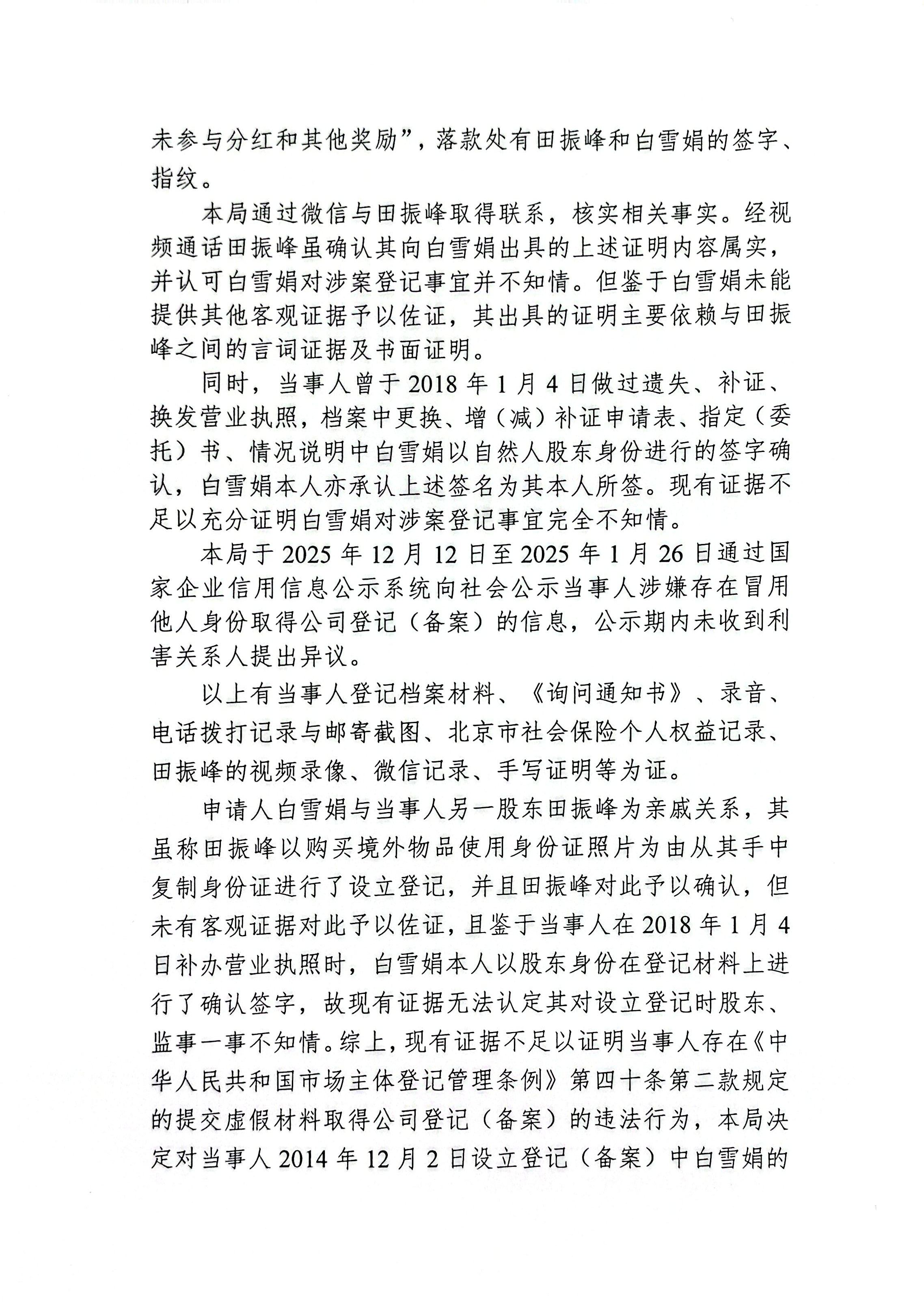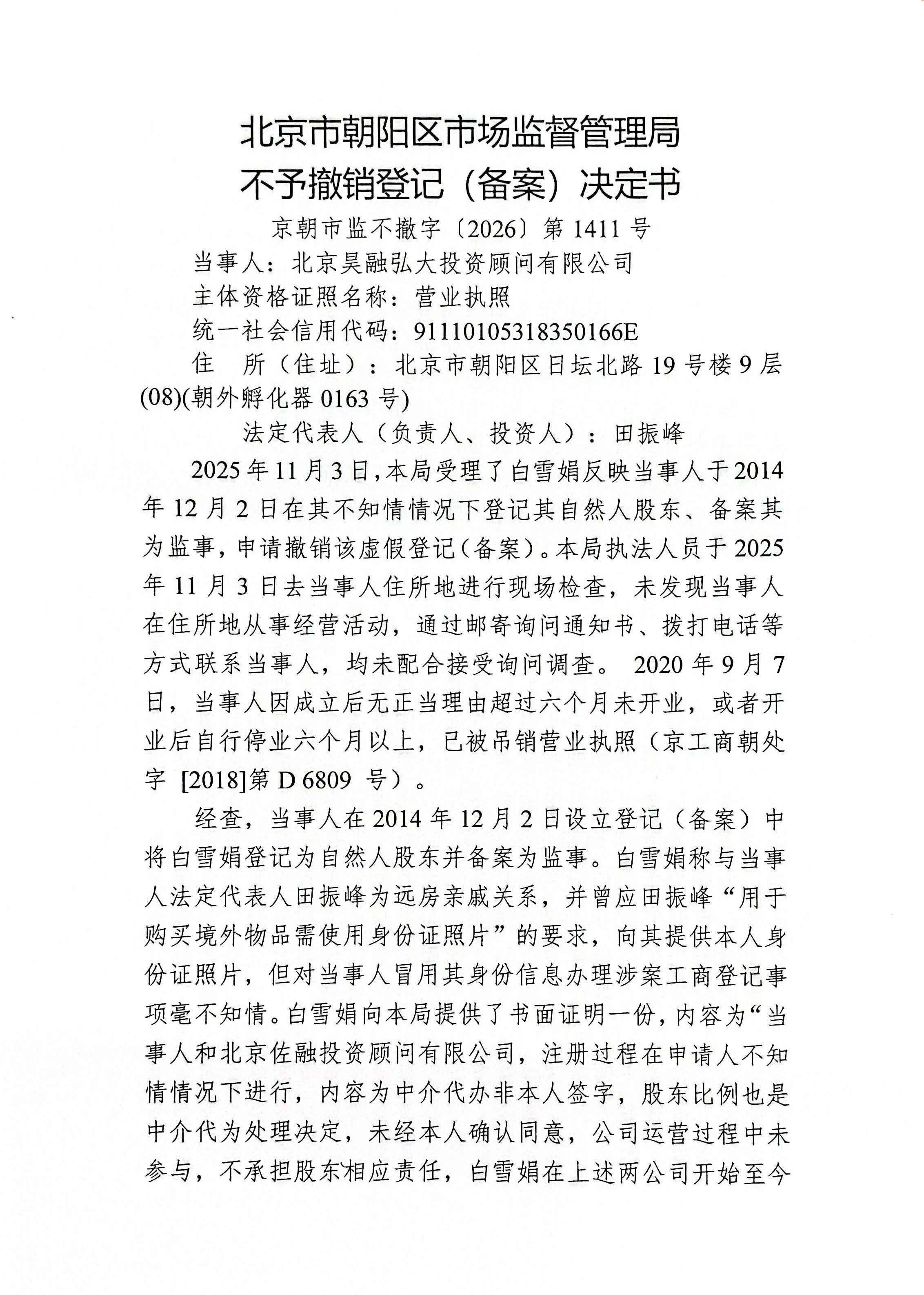 不予撤销北京昊融弘大投资顾问有限公司登记(备案)决定书