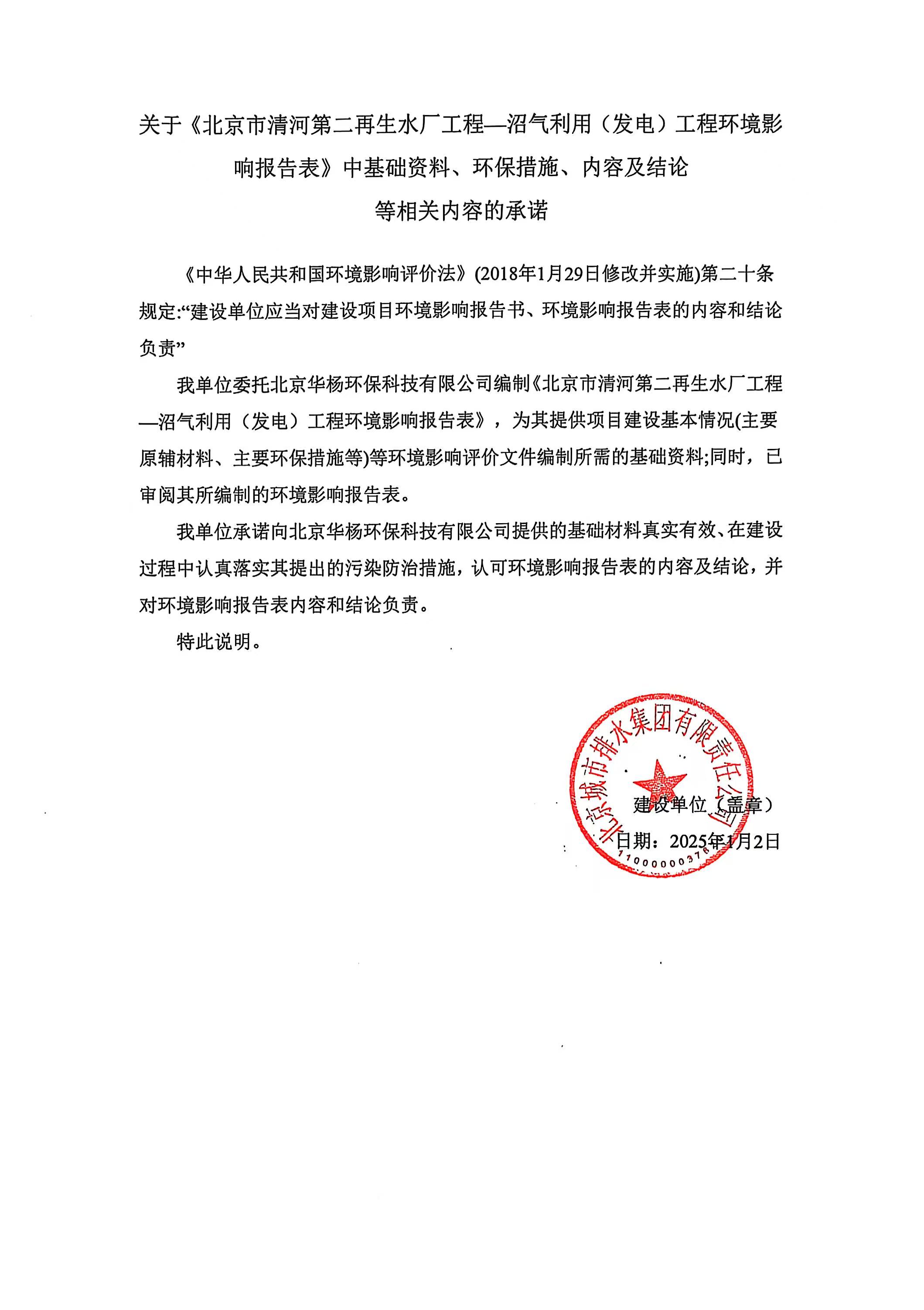 北京市清河第二再生水厂工程—沼气利用(发电)工程项目