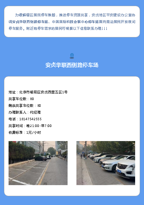 安贞地区居民,停车资源共享,缓解您的停车难题!