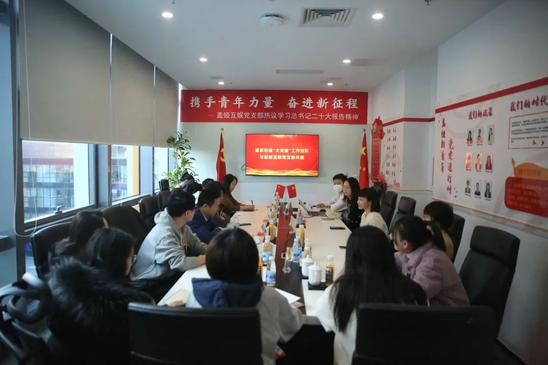 交流座谈中,盖娅互娱企业党支部介绍了企业基本情况,并从机制建设、工作特色、所获荣誉、亮点活动等方面,汇报了新青年党建工作品牌建设情况。