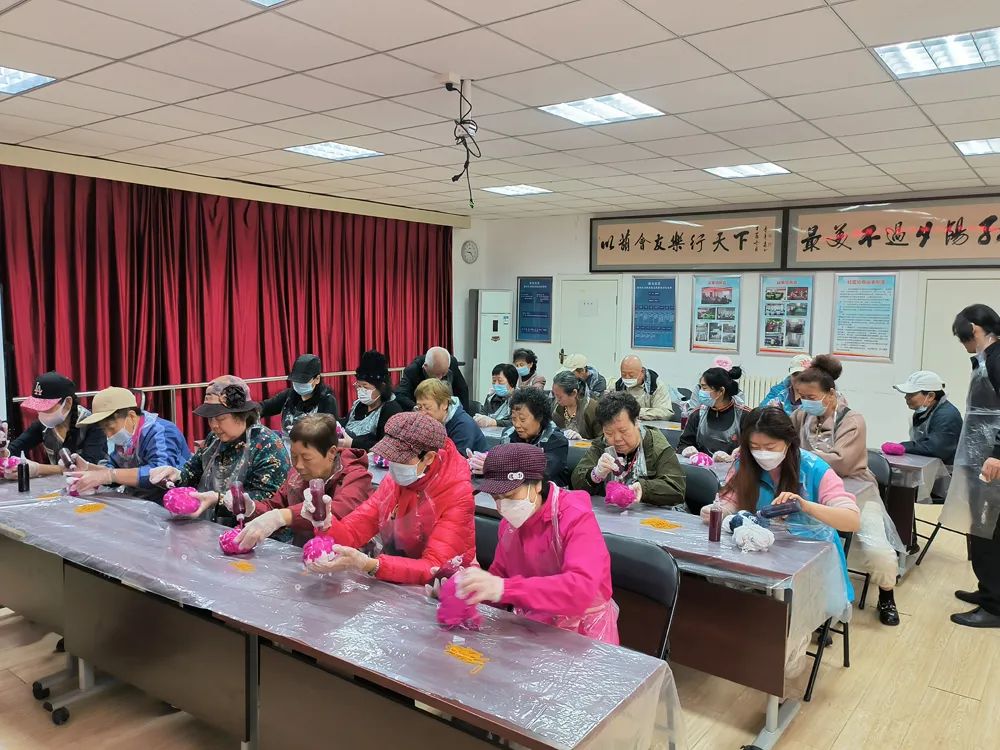 扎染是中国历史悠久、传统而独特的染色工艺,为使退休人员了解扎染的基本原理,体会扎染特有的艺术魅力,在扎染活动中,手工老师为大家详细讲解了扎染技艺的起源、特点、扎染步骤,慢慢将大家带入到扎染的世界中。