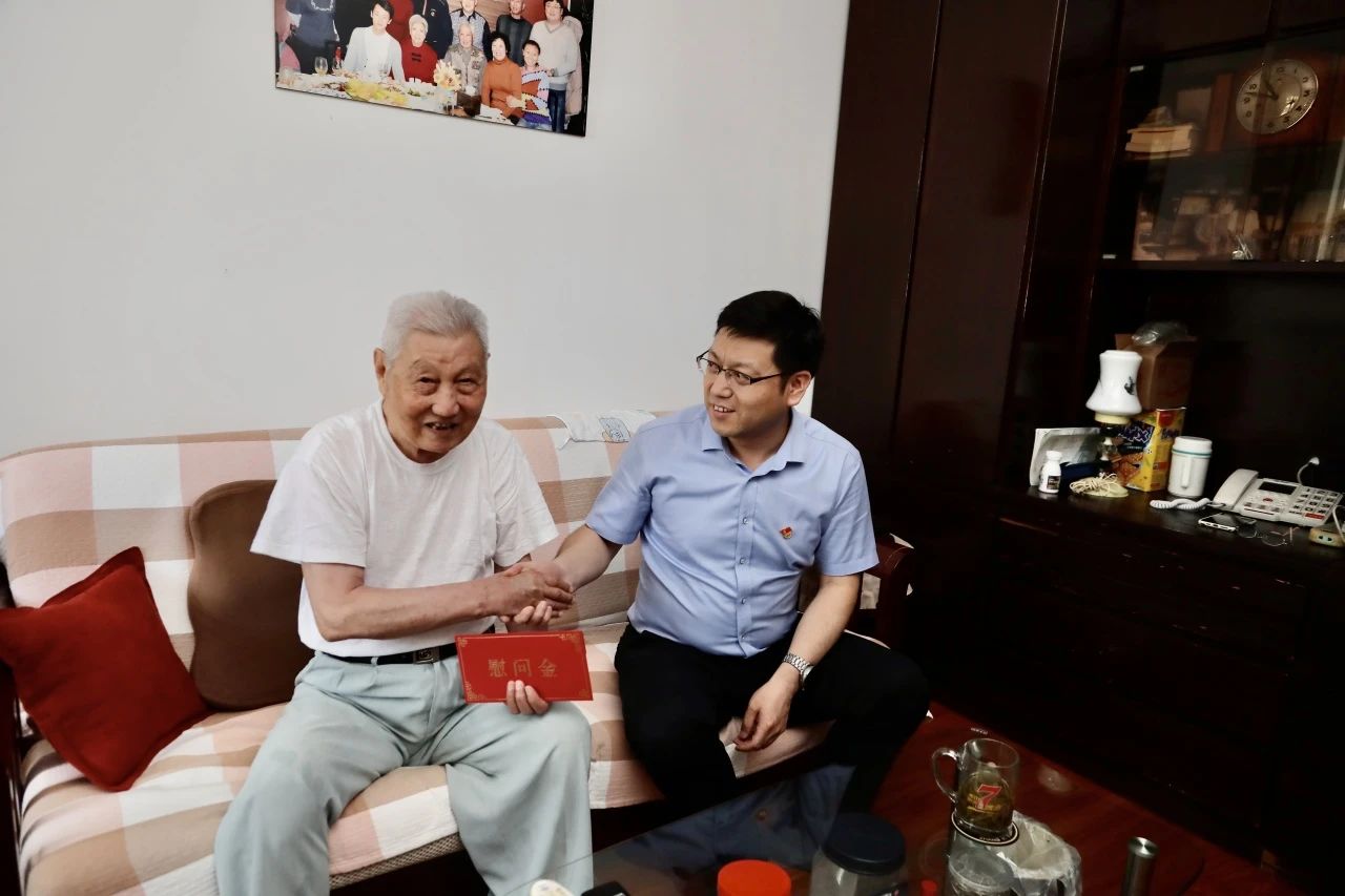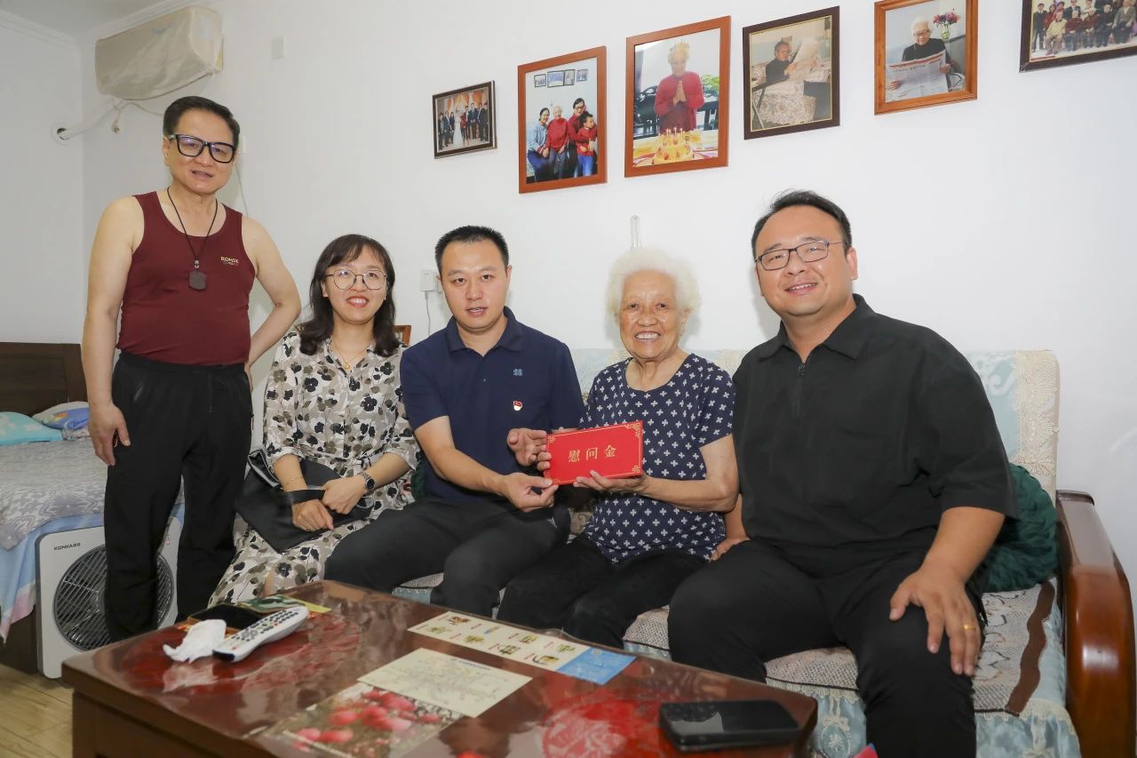 李伟走访慰问了同样是建国前入党、今年已经93岁高龄的老党员杜秀琴。在老人家中,李伟听老党员讲述解放战争期间参加妇女救助会,在县城做内勤支援前线工作的故事,并邀请老人给大家讲述自己的纺织记忆。随后,李伟仔细询问了老人的身体状况和家庭情况,代表街道工委向老党员致以节日的祝福,嘱咐老党员好好休息,保持乐观的心态。