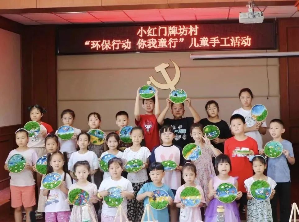 近日,牌坊村村委会以环保为主题,组织辖区青少年开展制作竹编苔藓画活动。