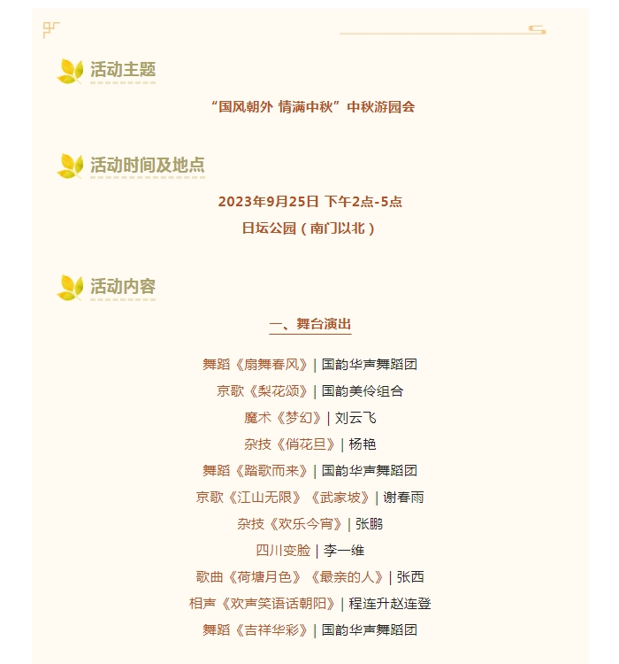 国风朝外 情满中秋 9月25日趣味游园会 邀您庆中秋 享团圆