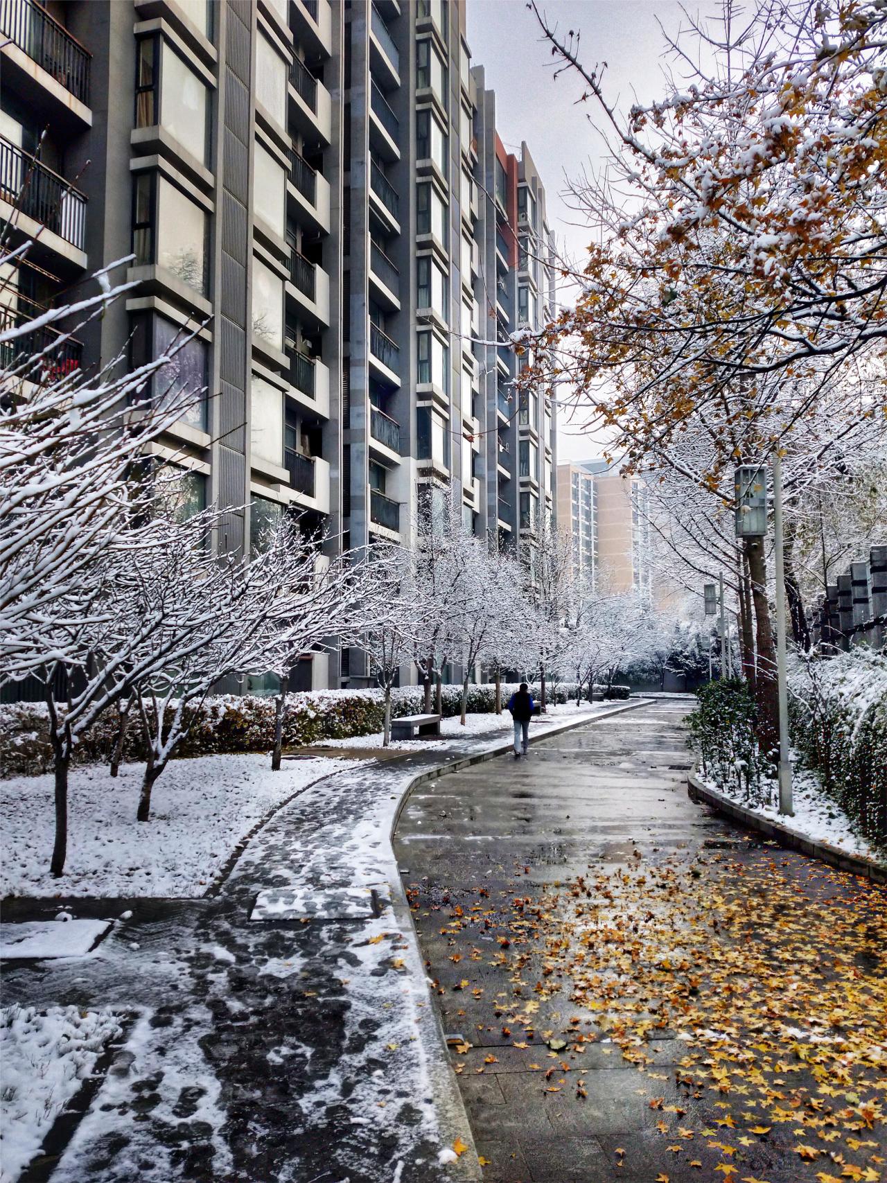 雪后的街道银装素裹,每一处景物都披上了洁白的外衣。无论是商店的招牌,还是树木的枝头,都如诗如画。今天的来广营,少了平日车水马龙的喧嚣,仿佛一幅宁静的画卷,一切都显得那么纯净。时间在这里静止,只有这片雪景,默默诉说着浪漫的故事。
