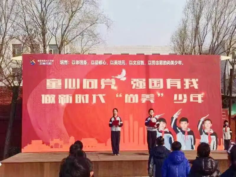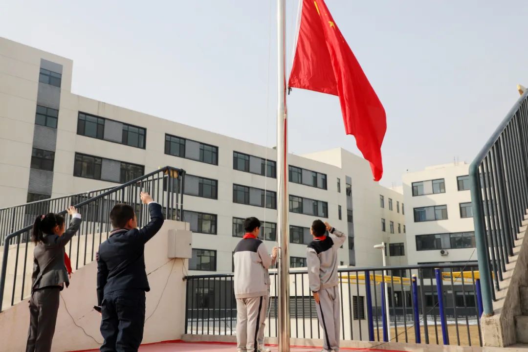 北京市第八十中学北皋分校的校园里,全体师生共同迎来了新学期,升旗仪式上鲜艳的五星红旗在微风中缓缓升起,雄壮的国歌奏响,回荡在整个校园,少先队员们精神抖擞纷纷举起右手,向着国旗行少先队队礼表达他们对祖国的无尽敬意。