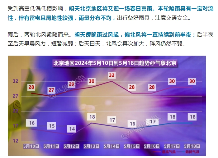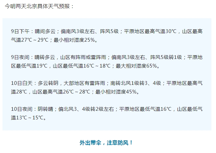 明天北京大部有雷阵雨!风大,阵风7级以上