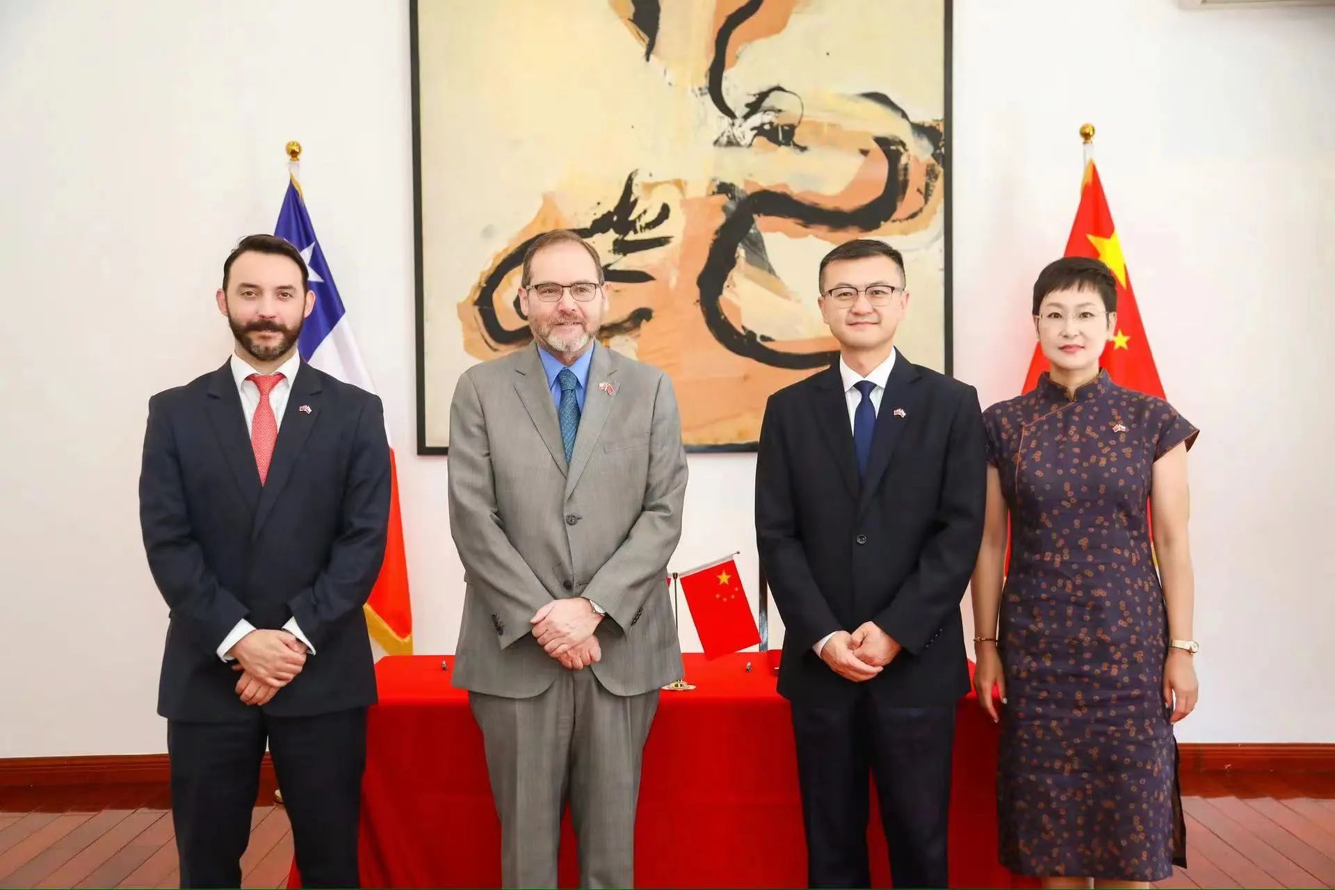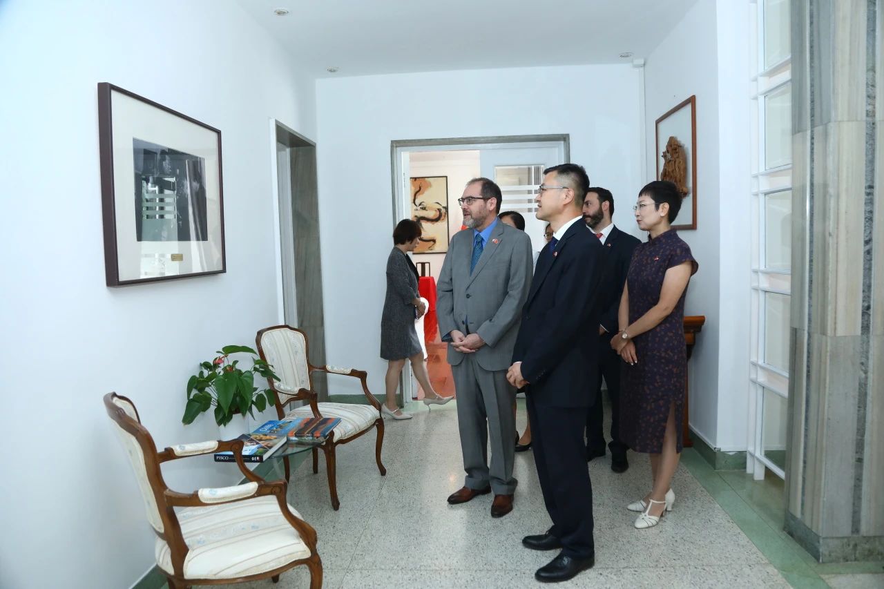 签约仪式结束后,双方就智利地理、人文环境等进行了友好交流,并参观了使馆内陈设及摄影作品,重温了中智两国友好往来的时代记忆与文化互通。