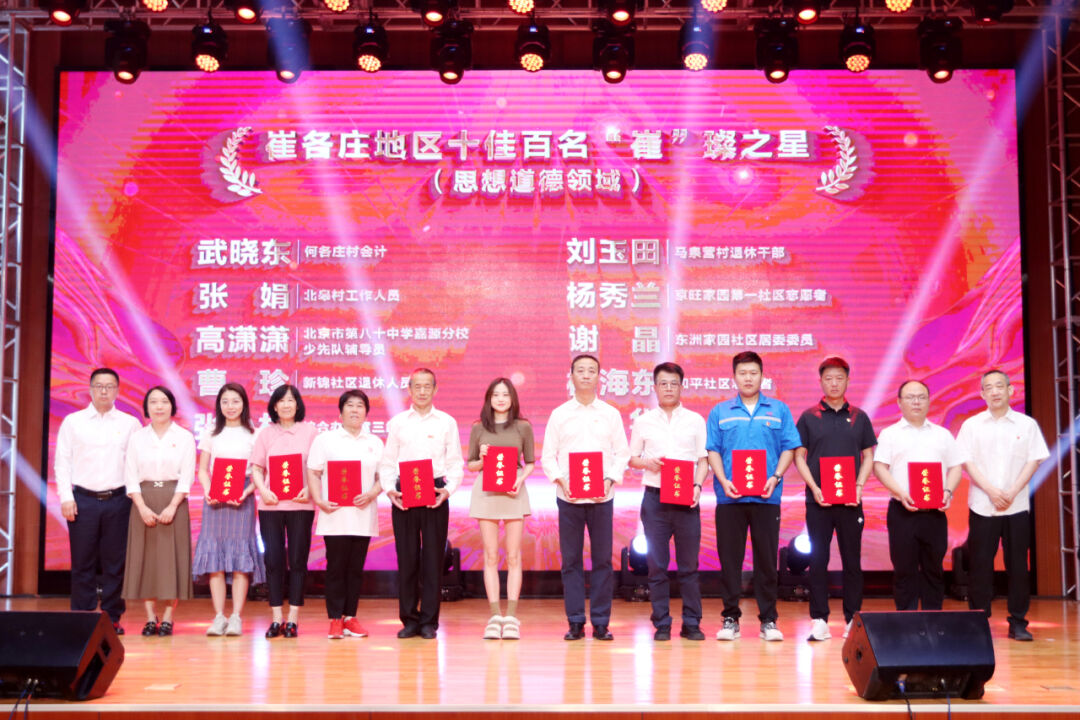 为激发地区广大党员干部群众干事创业的热情,树立典范和榜样,更好地凝聚党群、干群合力,激发团结奋进的力量,崔各庄地区工委、办事处今年组织开展了十佳百名“崔”璨之星评选活动。推选出涉及党建、经济、农业、民生、社会治理、平安建设、生态环境、文化体育、志愿服务、思想道德10个领域的100名“崔”璨之星,表彰先进、树立典型、提振精神、凝聚合力。
