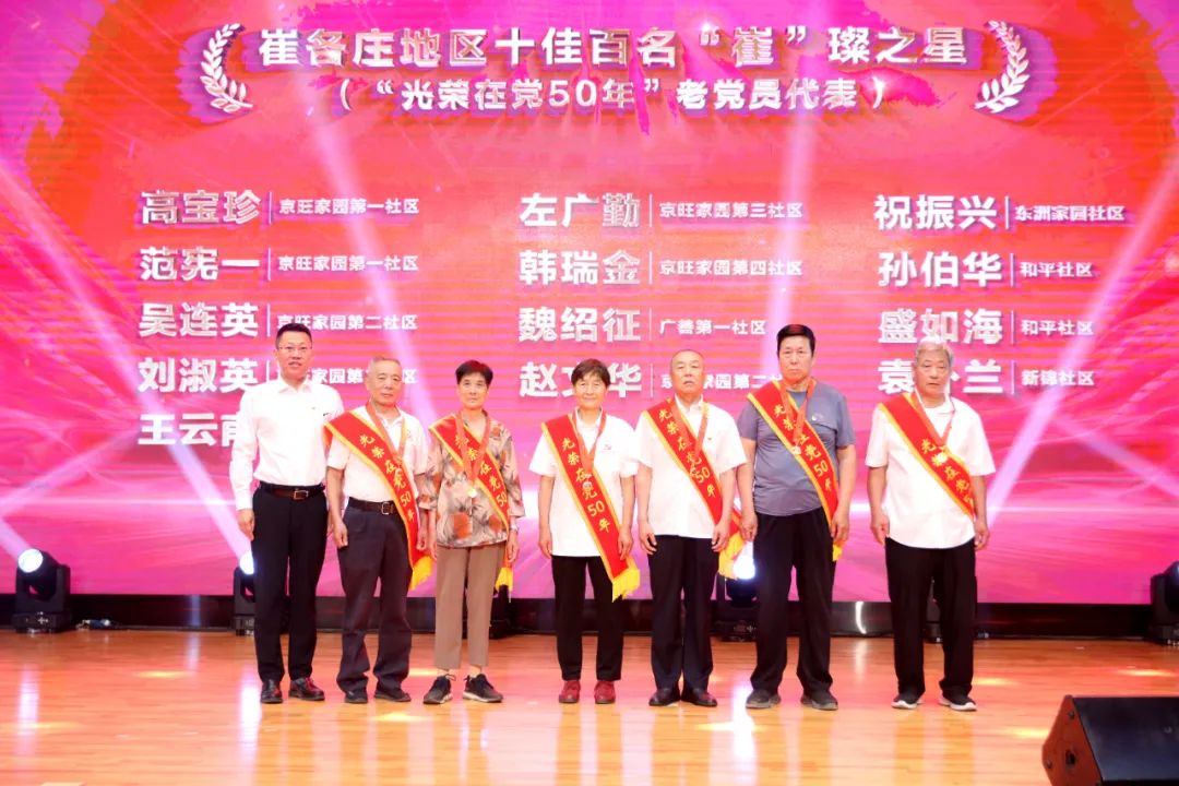 光荣在党五十年,信念如磐意志坚。地区工委书记李泽林为老党员代表们颁发“光荣在党50年”纪念章,感谢他们为党和国家作出的贡献。老党员们传承党的优良传统,践行党的崇高使命,在“传帮带”中,激励新时代的党员牢记初心,奋勇拼搏,携手共同开创崔各庄更加辉煌的未来。