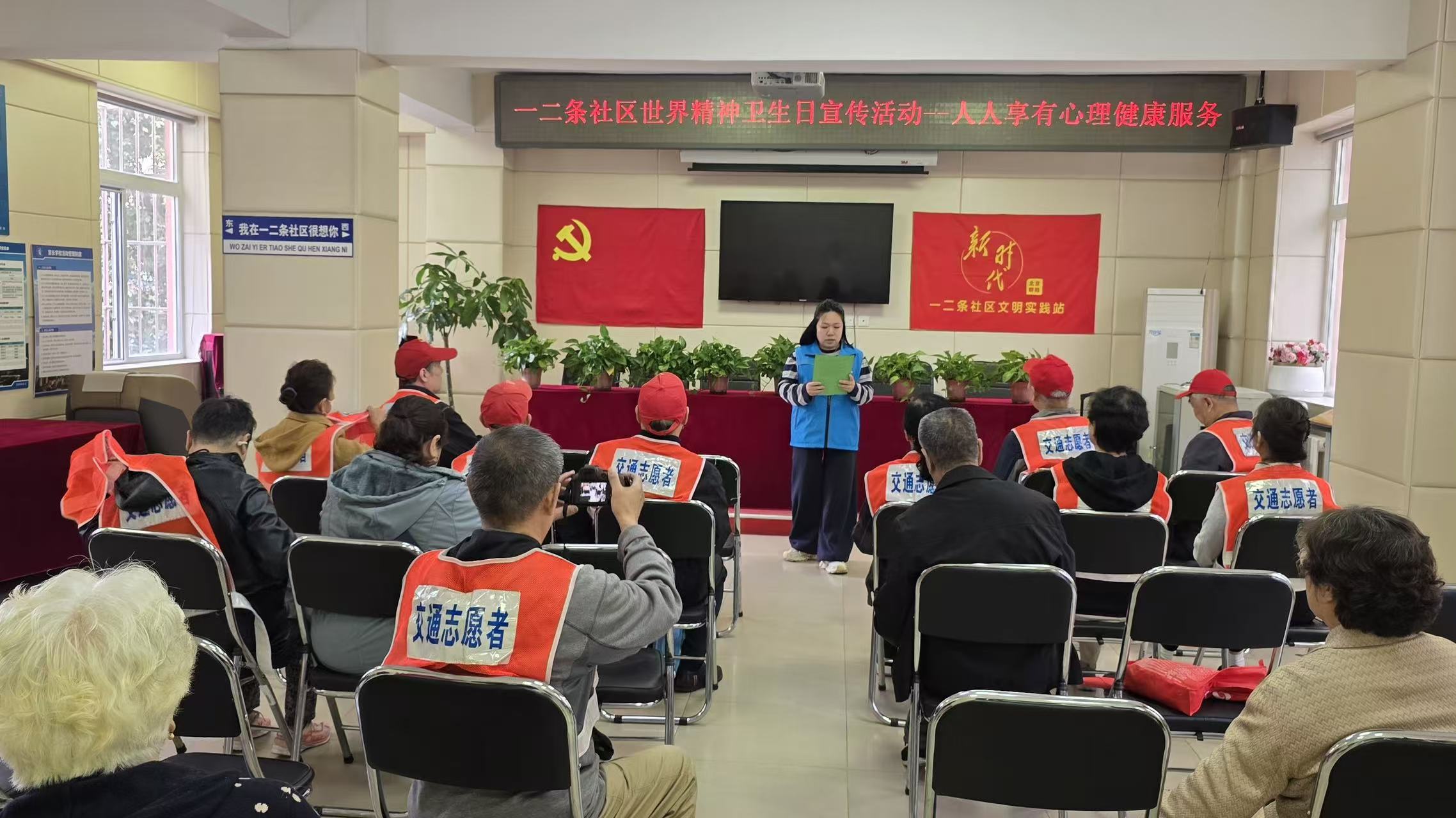 一二条社区围绕“人人享有心理健康服务”主题开展精神卫生日宣传,社区居干普及心理健康知识,解析常见问题,提供实用调适方法。活动通过案例讲解、发放资料,破除认知误区,提升居民心理保健意识与能力。它倡导全社会关注精神卫生,努力提升服务可及性,旨在用理解与关爱筑起心理防线,携手居民共赴心灵之约,共同书写社区和谐健康的新篇章。