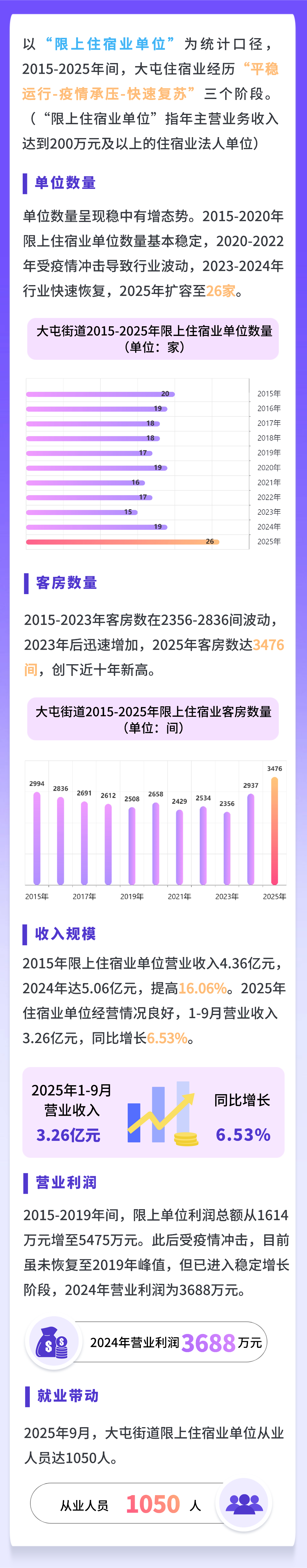 住宿业作为城市服务的核心载体,既是民生保障的“窗口”,也是文旅消费的“枢纽”。从数据脉络看,大屯街道住宿业已进入从“疫情复苏”到“质量提升”的关键跨越,行业韧性与活力持续增强。2025年9月,大屯里商业街正式开街,亚朵酒店、桔子水晶酒店、海友酒店3家连锁品牌,为区域住宿业发展注入新活力。