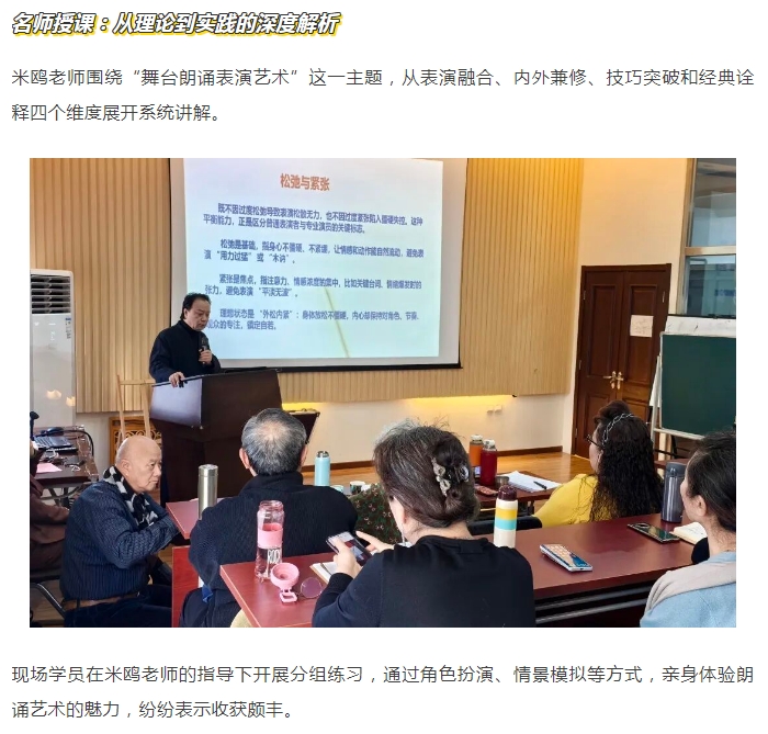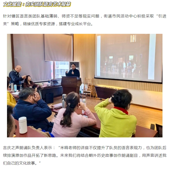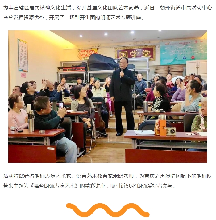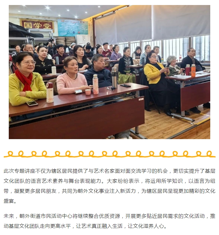 朝外街道市民活动中心开展舞台朗诵表演艺术讲座 助力文化服务提质增效