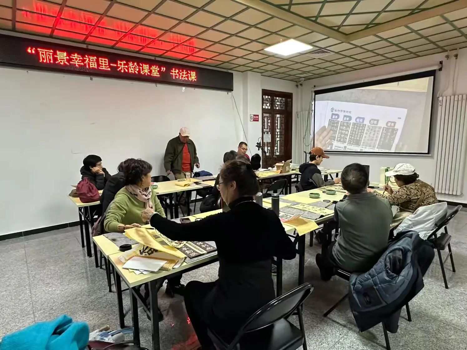 当笔墨与时光相遇,便在社区里晕染出别样温情。历经20节课程的充实陪伴,“丽景幸福里-乐龄课堂”书法班初级课程圆满落幕。最后一课的教室里,墨香氤氲,学员们齐聚一堂,在老师的带领下温故知新,从握笔坐姿的规范到永字八法的精妙,从基本笔画的勾勒到偏旁组合的韵律,课程的核心精髓在反复重温中愈发清晰。创作环节更是精彩纷呈:有人挥毫写下“福”字,将对新年的期许凝于笔端;有人铺纸练习对联,在平仄对仗中感受传统文化的厚重;还有人即兴创作诗词,让笔墨流淌出生活的诗意。这不仅是技艺的提升,更是精神的滋养。一笔一画的专注锻炼了身心,邻里相伴的学习搭建了社交桥梁,从歪歪扭扭到工整美观的作品蜕变,更让学员们收获了满满的自信与成就感,生动诠释了“老有所学、老有所乐”的生活理念。