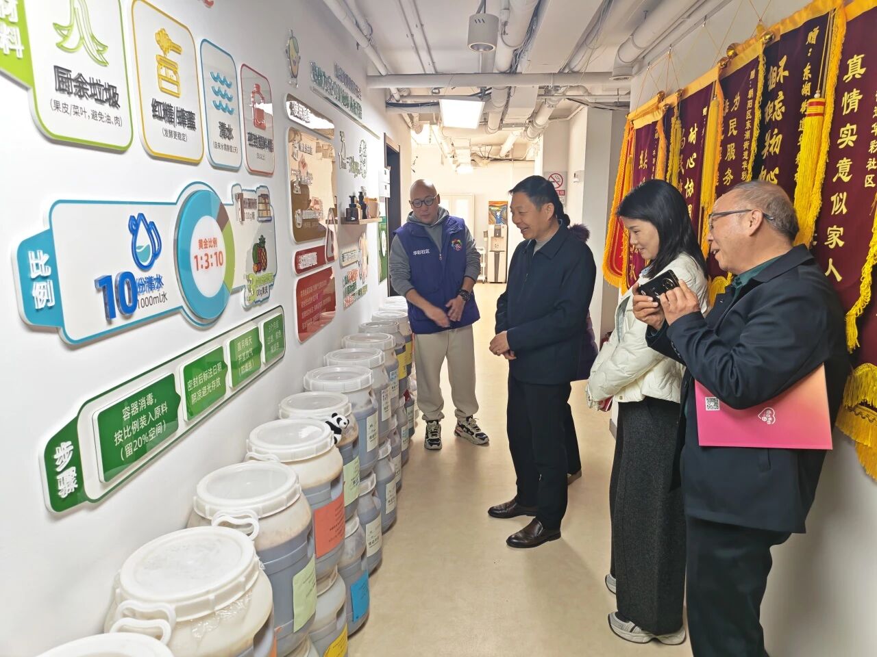 酵素作为华彩社区的特色品牌,在基层治理中发挥了重要作用。王延庆一行详细了解了社区如何动员居民主动进行垃圾分类,收集厨余垃圾,参与酵素制作并将酵素用于社区公共绿地土壤修复、绿植养护的全过程。