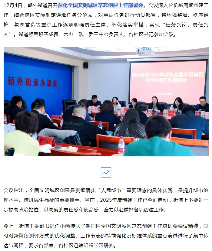 凝心聚力建长效 同心共创文明城 朝外街道召开全国文明城区常态创建工作部署会