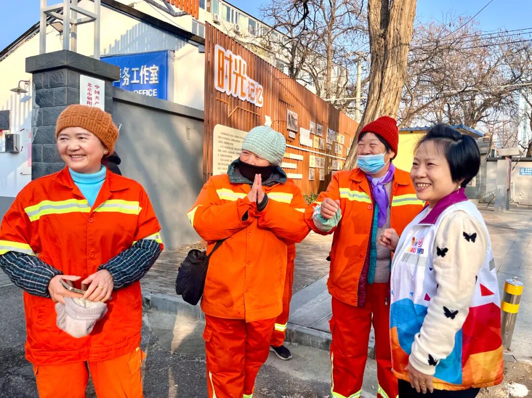 随后,郭茯玲带着这些亲手织成的帽子来到社区,表达了想赠送给环卫工人的心愿。社区为此组织了一场简单而温馨的捐赠仪式,环卫工人们接过这份“温暖礼物”纷纷试戴,脸上洋溢着幸福的笑容。“这帽子戴着暖和又好看,这下干活再也不怕冻耳朵和头了,多谢郭大姐的心意。”一句句真诚的感谢,也让郭茯玲心里暖流涌动。