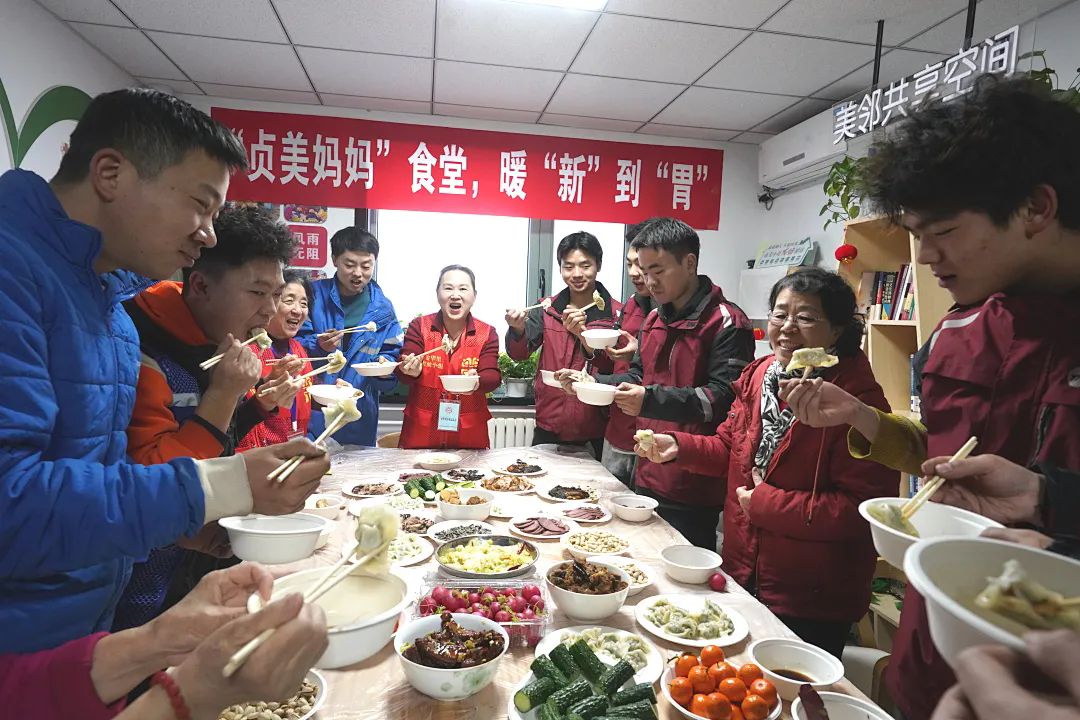 “贞美妈妈”食堂由社区党员志愿队伍红娘小组发起,相邻社区在职党员、社会单位积极加入,着力解决新就业群体吃家常菜难、交友难等实际问题,每年劳动节、端午节、中秋节等重要时间节点都会举办暖新活动,用家常味道传递暖心关怀。