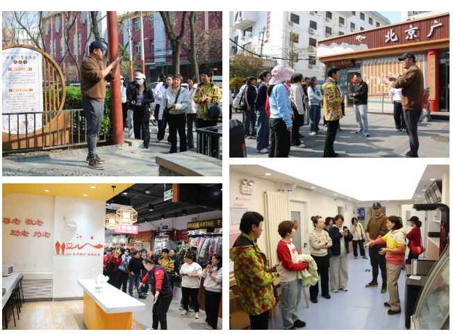 随后,观摩团沿创建勘察线路实地走访,先后查看中医一条街、京客隆老年友好型超市、安贞街道养老服务中心、社区公共空间及适老基础设施等点位,社区工作人员结合3月23日北京市民政局专家组督导指导意见,对照创建标准与推进细节,现场讲解适老化改造、服务供给、场地运营、长效管理等关键环节,与各街道深入交流经验做法。