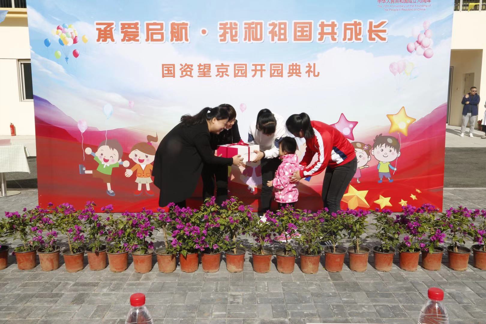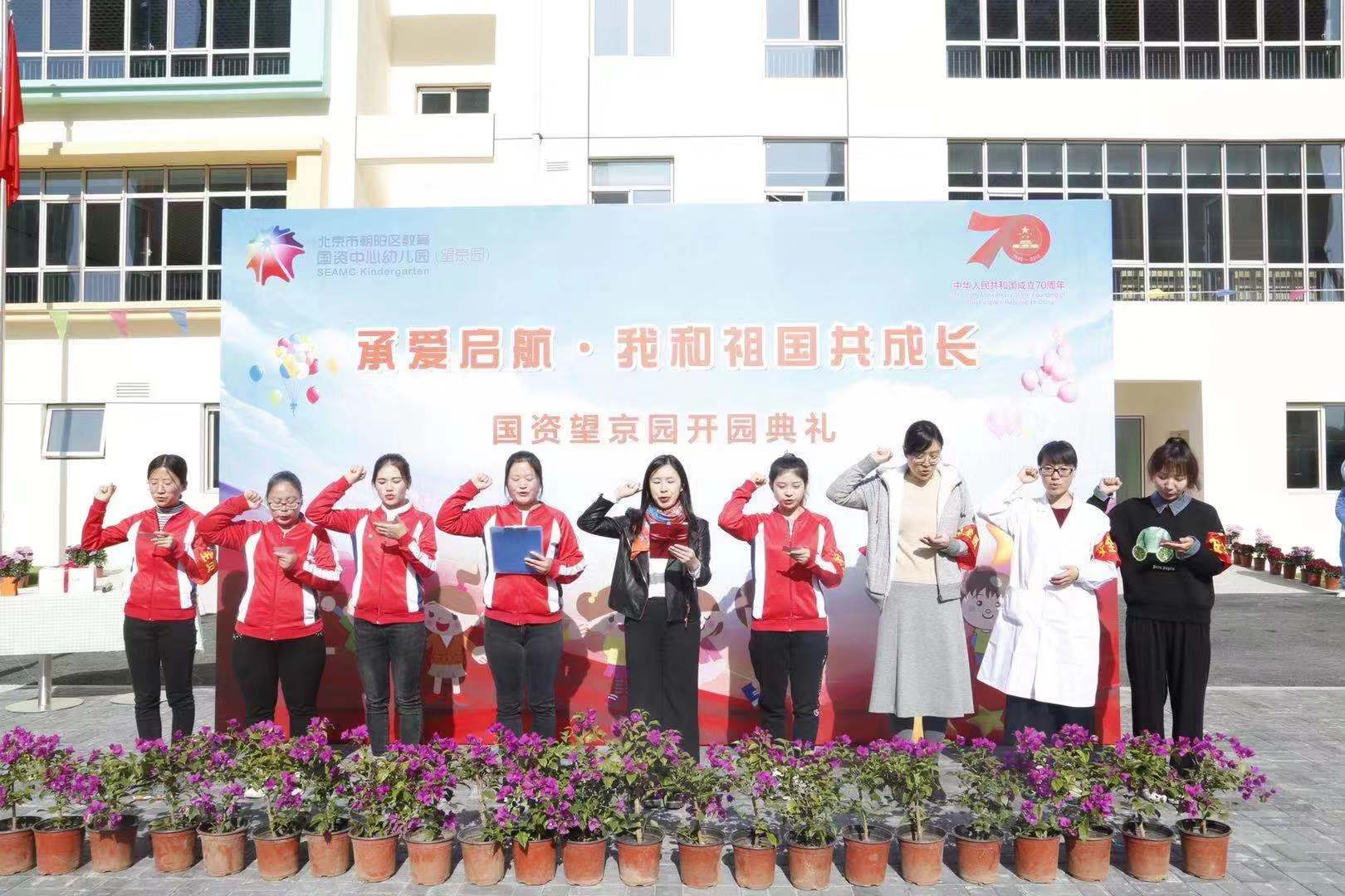 10月21日上午,朝阳区教育国资中心幼儿园望京园“承爱启航,我和祖国共成长”开园典礼在国资望京园操场举行。北京市朝阳区教育国资中心书记夏俊英、学前科科长俞曈,东湖街道办事处副主任吴彬、社区建设办公室相关负责人,花家地幼儿园市级示范园园长曹颖、执行园长潘春艳,以及国资望京园全体教职工、首批入园的小朋友和家长参加活动。