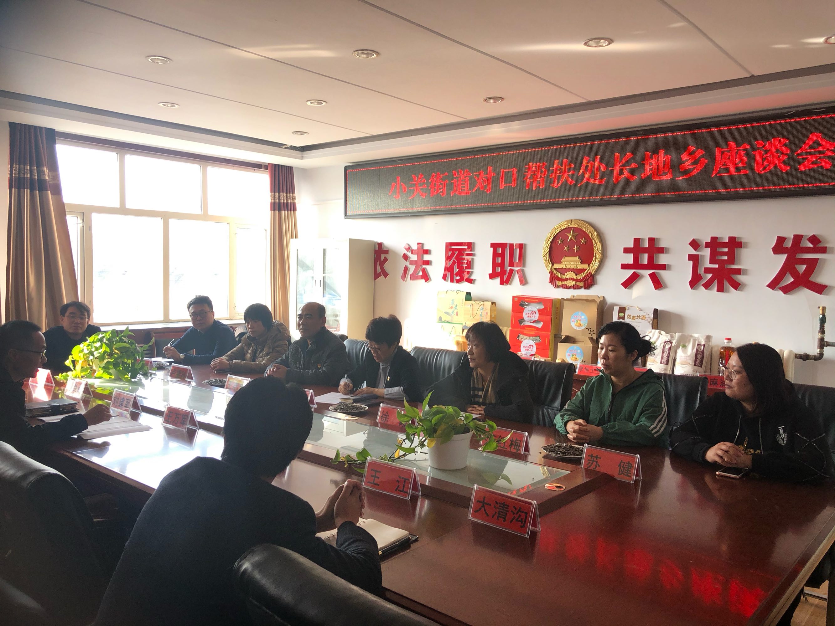 小关街道一行首先来到李家地镇,双方召开了座谈会,对李家地镇基本情况、目前扶贫特色产业及帮扶需求再次进行深入沟通,并对帮扶项目的进展进行了深入讨论。
