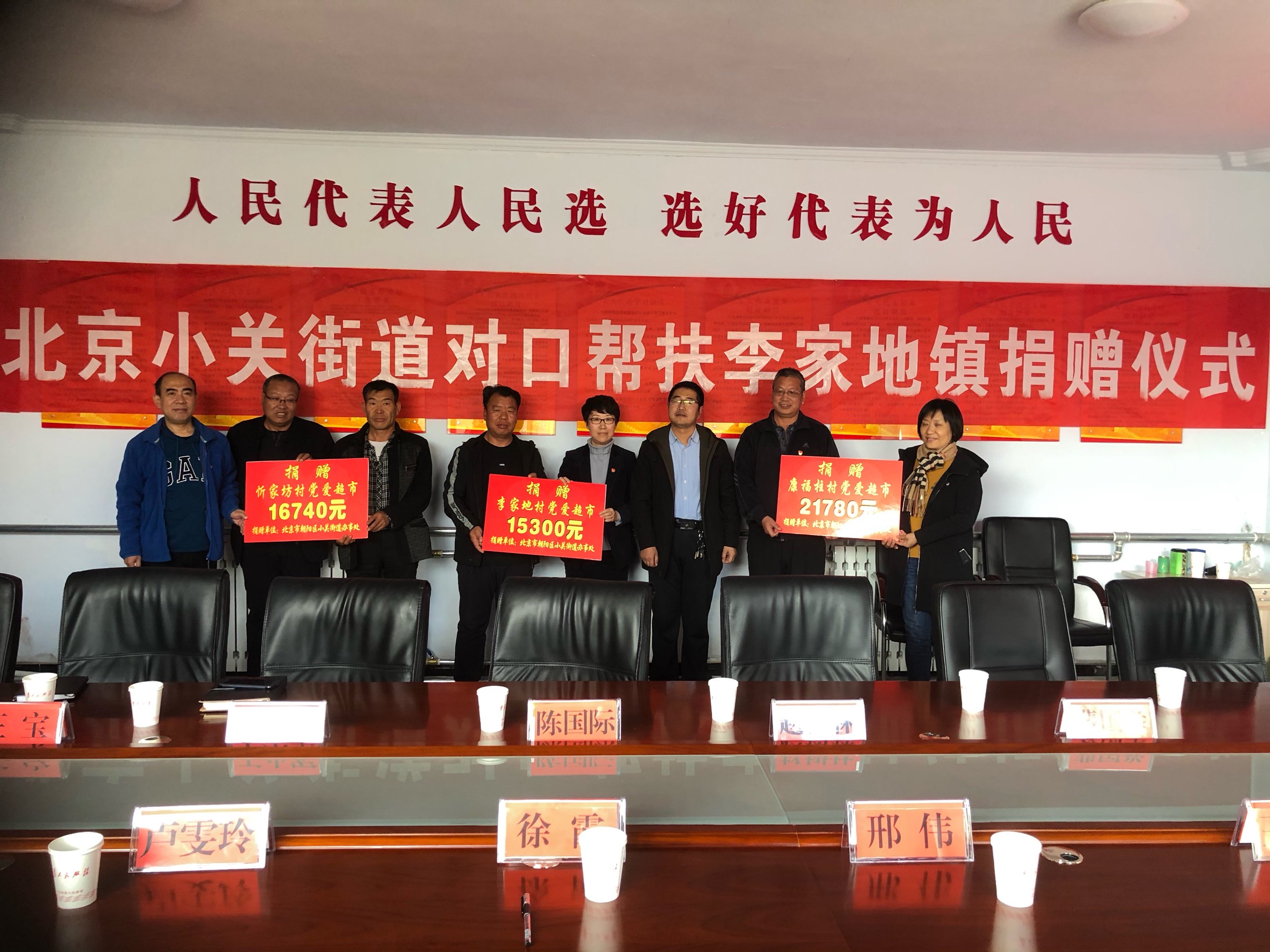 随后,邢伟主任,王志宏部长、徐霞副主任,代表小关街道办事处向李家地镇所属三个贫困村捐赠帮扶慰问金,并合影留念。