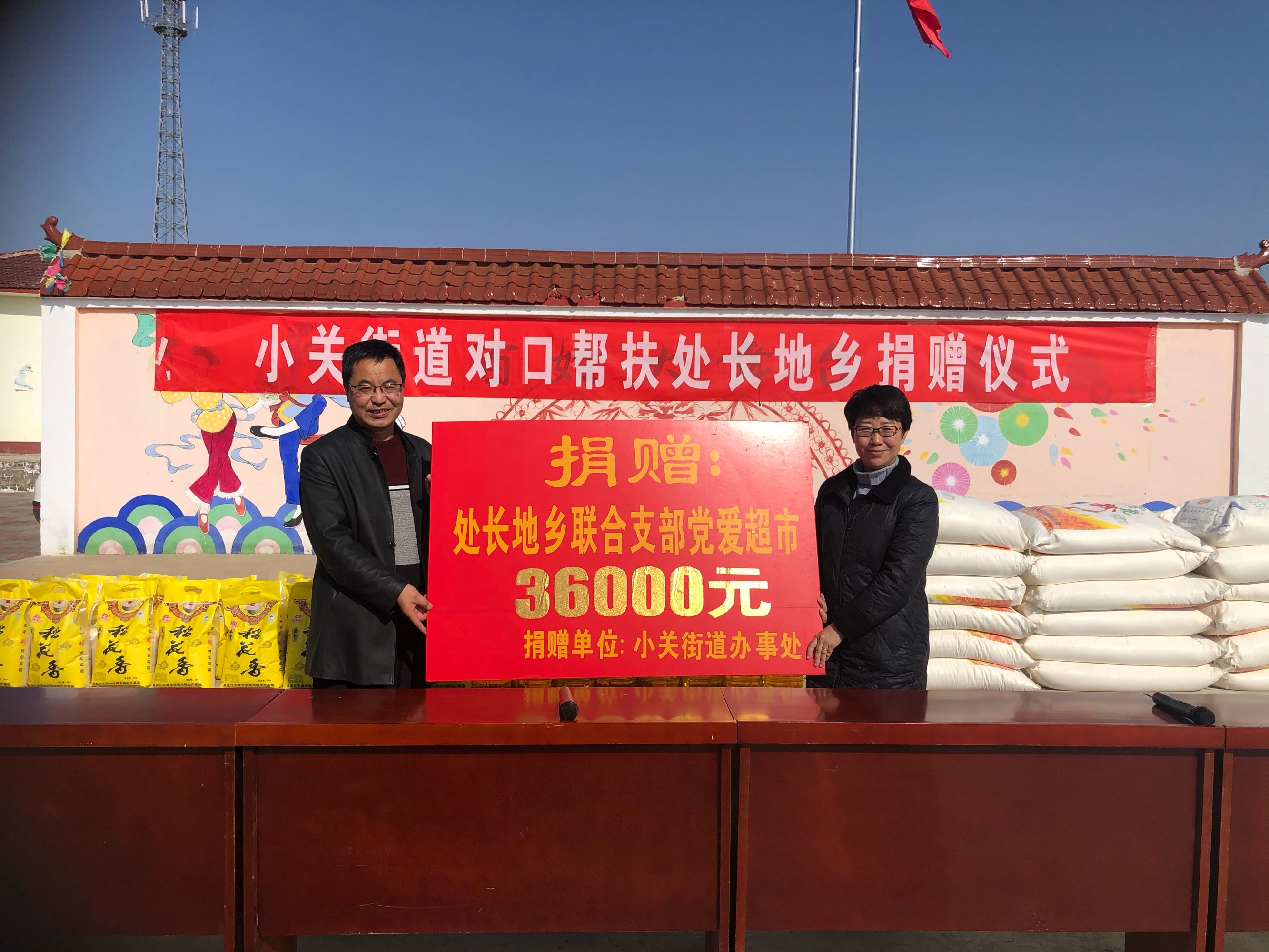 邢伟主任代表小关街道向处长地乡捐赠帮扶款36000元整